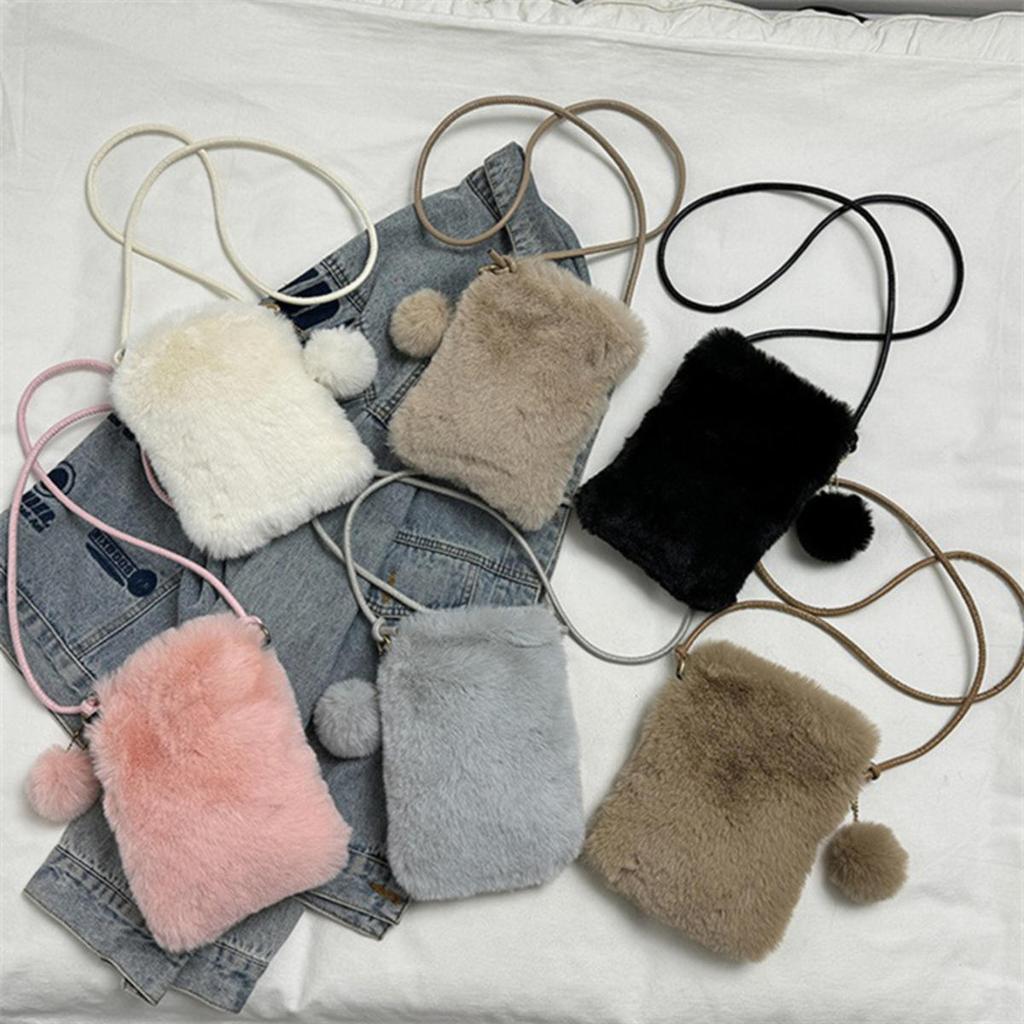 Женская плюшевая сумка через плечо однотонная, сумки для мобильного телефона, универсальные мини-кошельки, модные сумки на плечо, осенне-зимний кошелек для монет