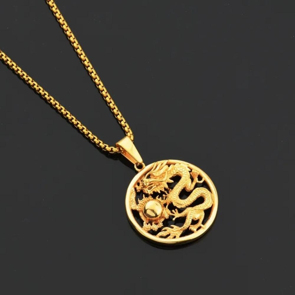 Round Chinese Style Necklace Alloy Men's Lucky Charm New Auspicious Dragon Pendant Men