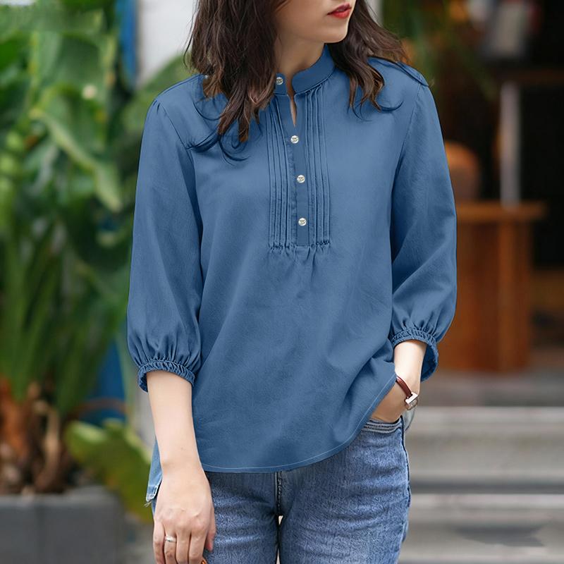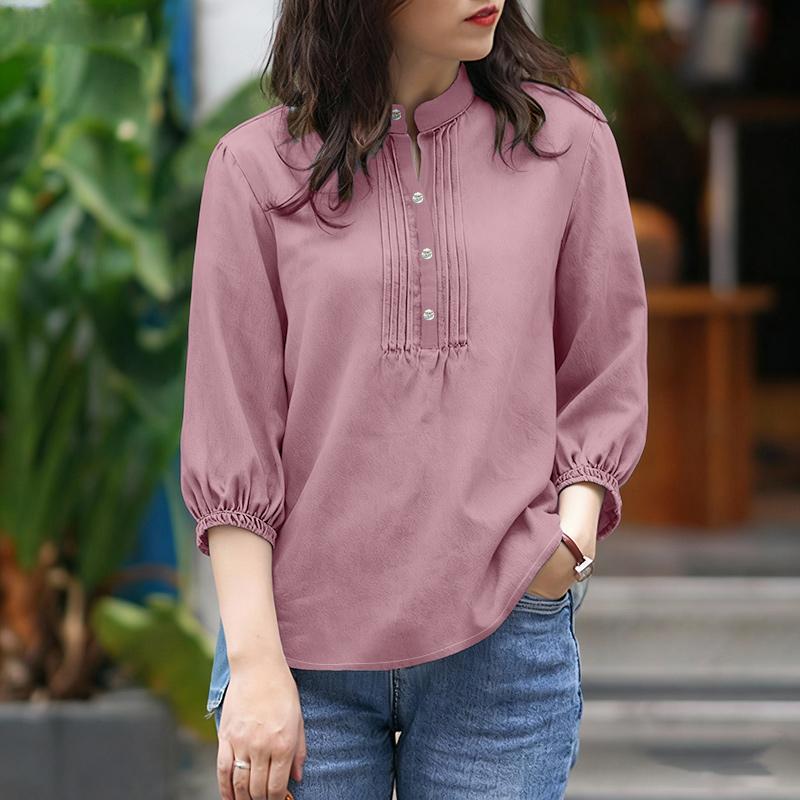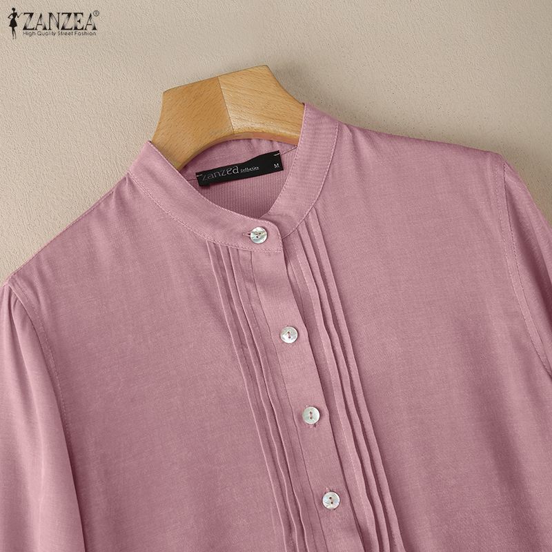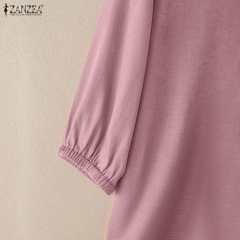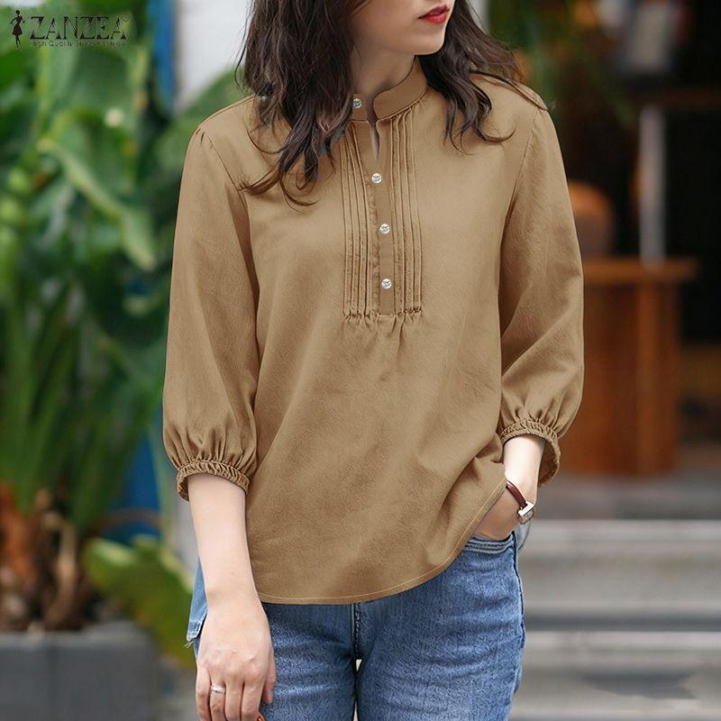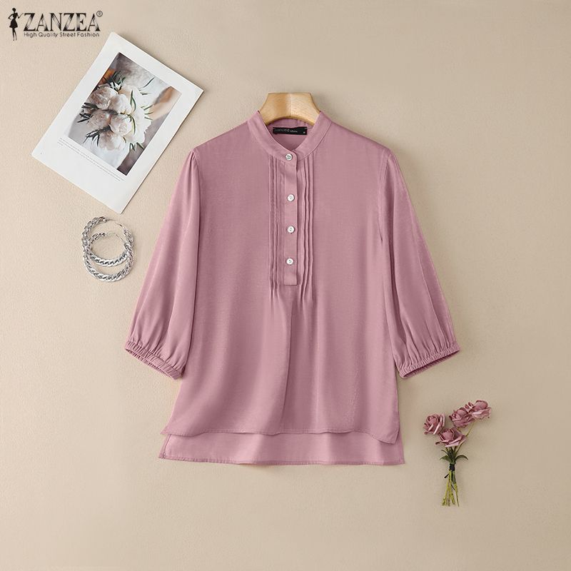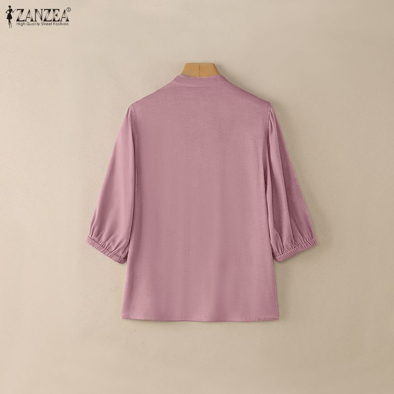 ZANZEA Женская повседневная блузка свободного кроя с воротником-стойкой и рукавами 3/4, однотонная