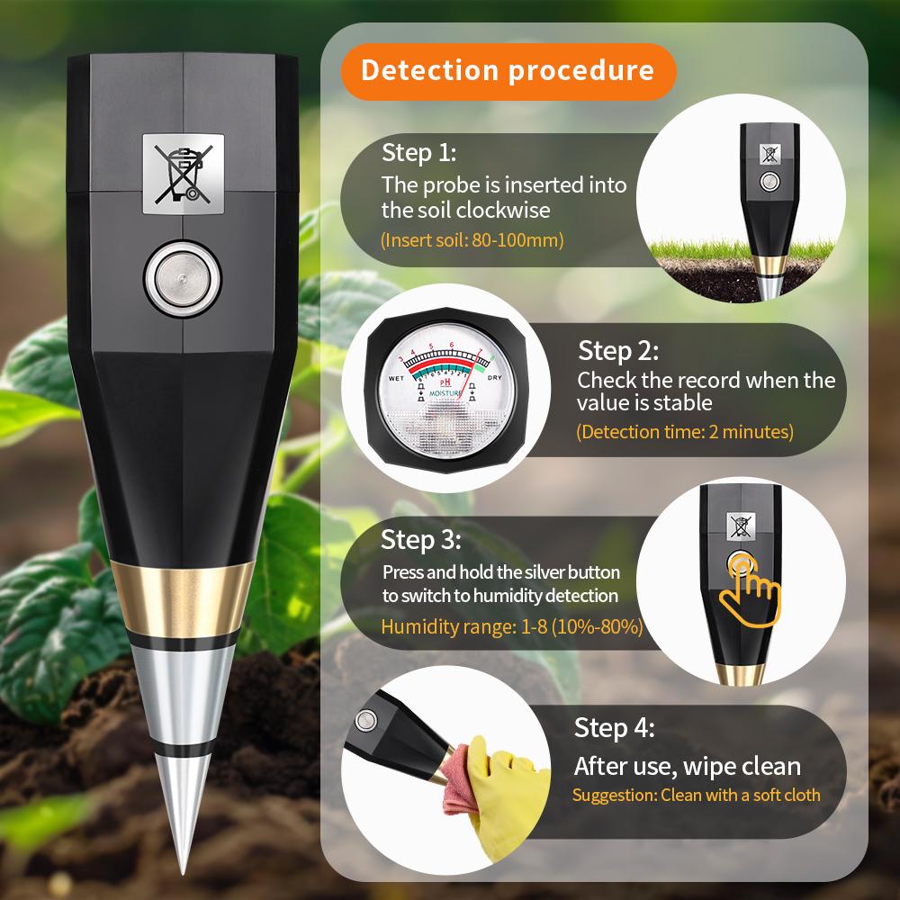 3. Функция 2-в-1, может измерять значение pH и влажность почвы, одна машина для двух, экономичная и экологичная.