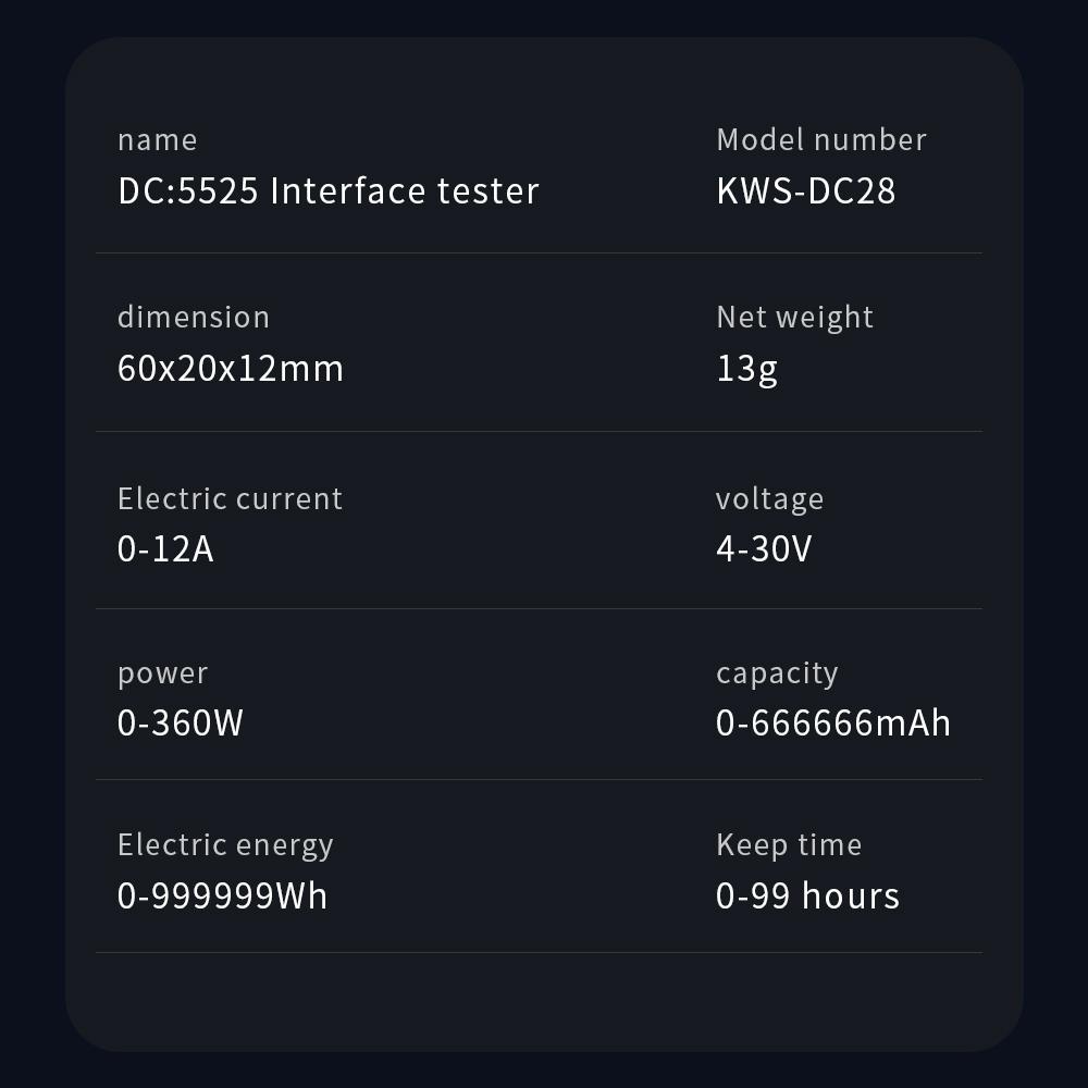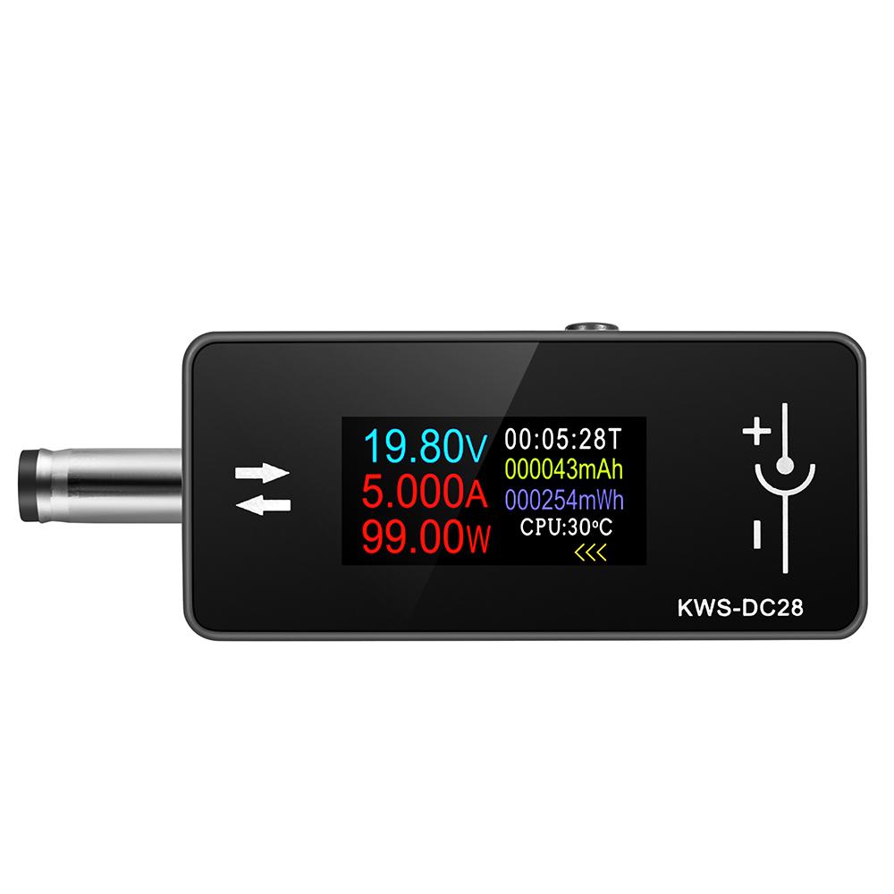 Цветной экран Детектор напряжения и тока KWS-DC28 Тестер постоянного тока Интерфейс 5525 Вольтметр Амперметр Устройство для тестирования зарядки мобильного телефона