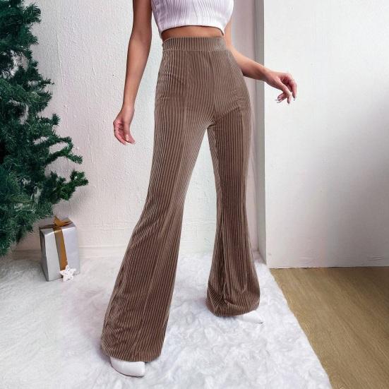 Полиэфирная ткань премиум-класса: Изготовленные из высококачественного полиэстера, эти вельветовые расклешенные брюки обладают мягкой, приятной к коже текстурой, обеспечивающей комфорт в течение всего дня.. Дышащий материал сохраняет прохладу и уют, что делает их идеальными для длительного ношения во время различных занятий без раздражения или дискомфорта.