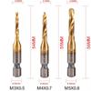 Набор комбинированных сверл-метчиков из титана - Метрическая резьба M3 M4 M5 M6 M8 M10 Метчики Инструмент для нарезания резьбы Сверление зенковкой