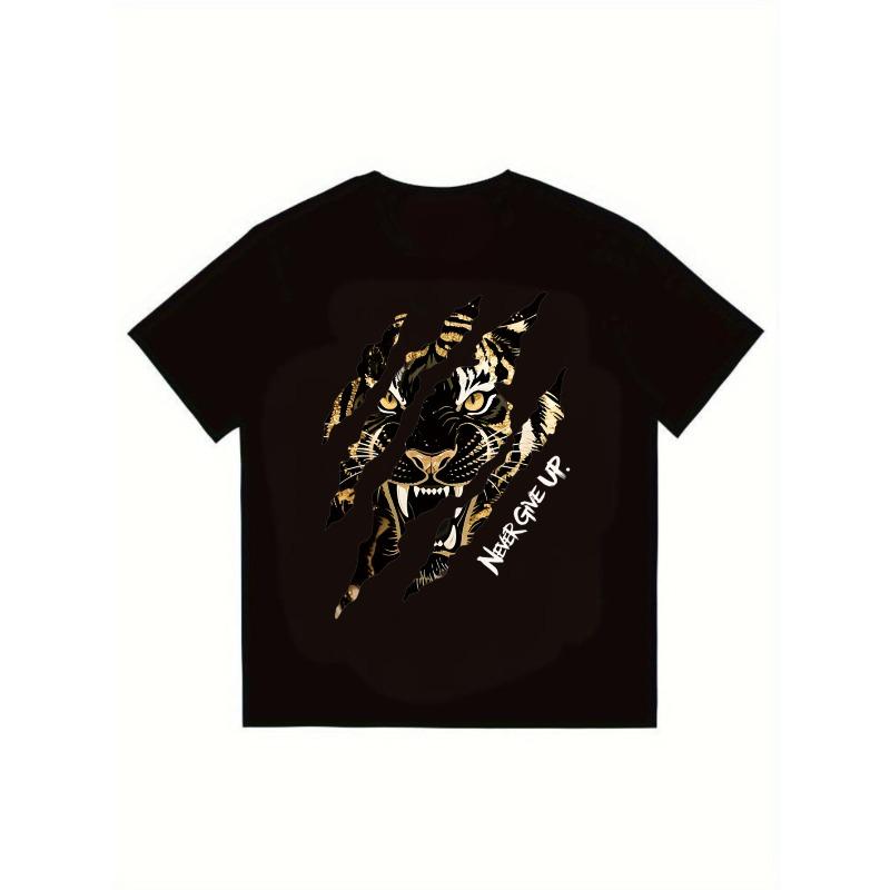 Черная футболка с графикой тигра, надписью Never Give Up (Никогда не сдавайся), повседневная уличная одежда, мужская мода — купить товар онлайн с бесплатной доставкой по всему миру!