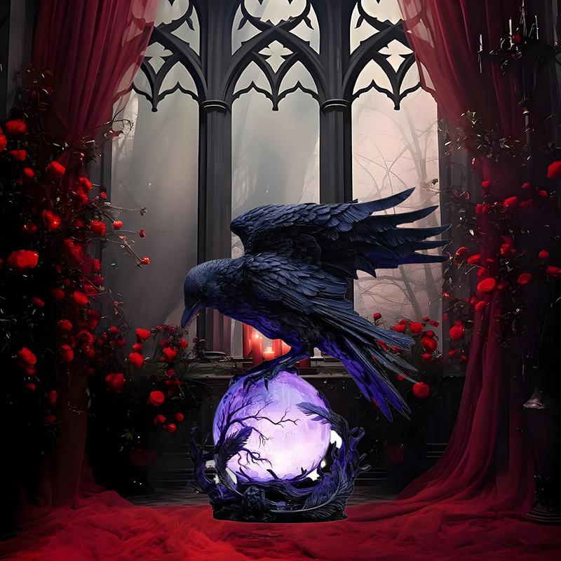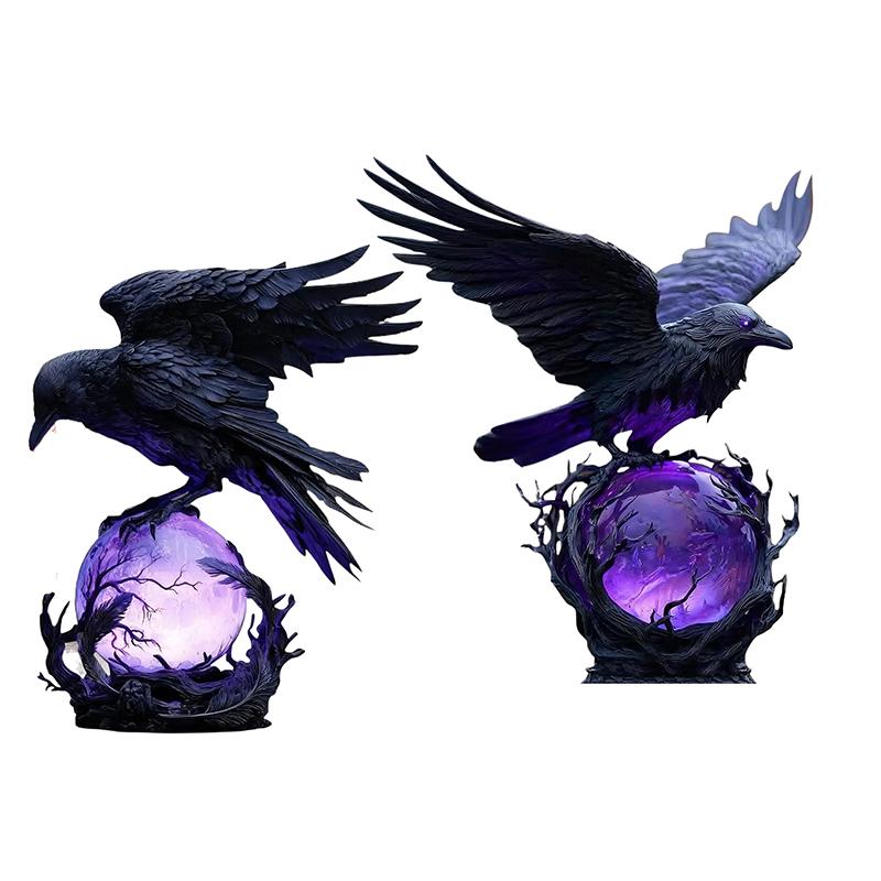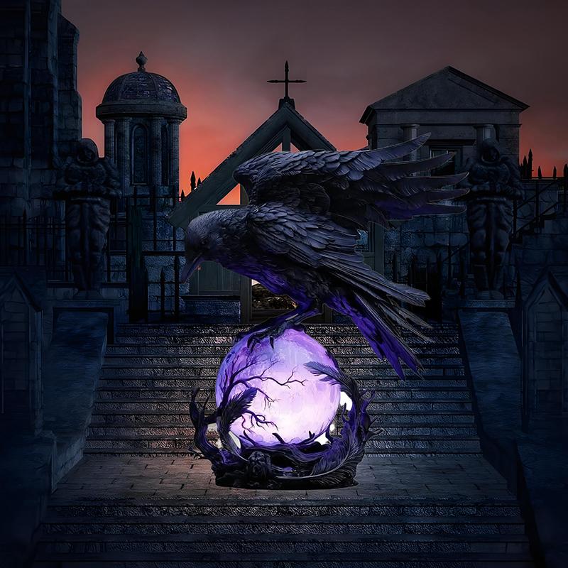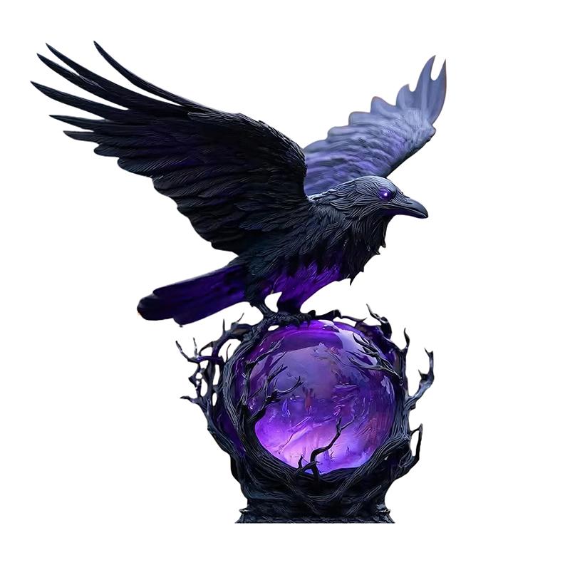 Готическая светодиодная лампа "Лунный свет ворона" – Мистическая скульптура ворона на светящемся шаре, 3D полый фонарь с фиолетовым светом