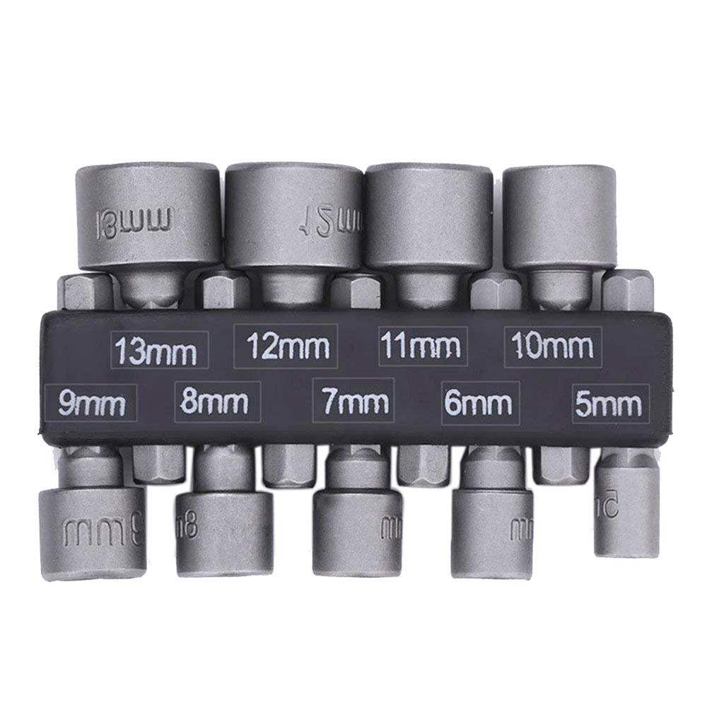 9pcs Power Hand Driver Drill Tools Set 5-13mm Metric Socket Wrench Set Power Nuts Driver Socket 1/4" Hex Shank Drill Bit Set