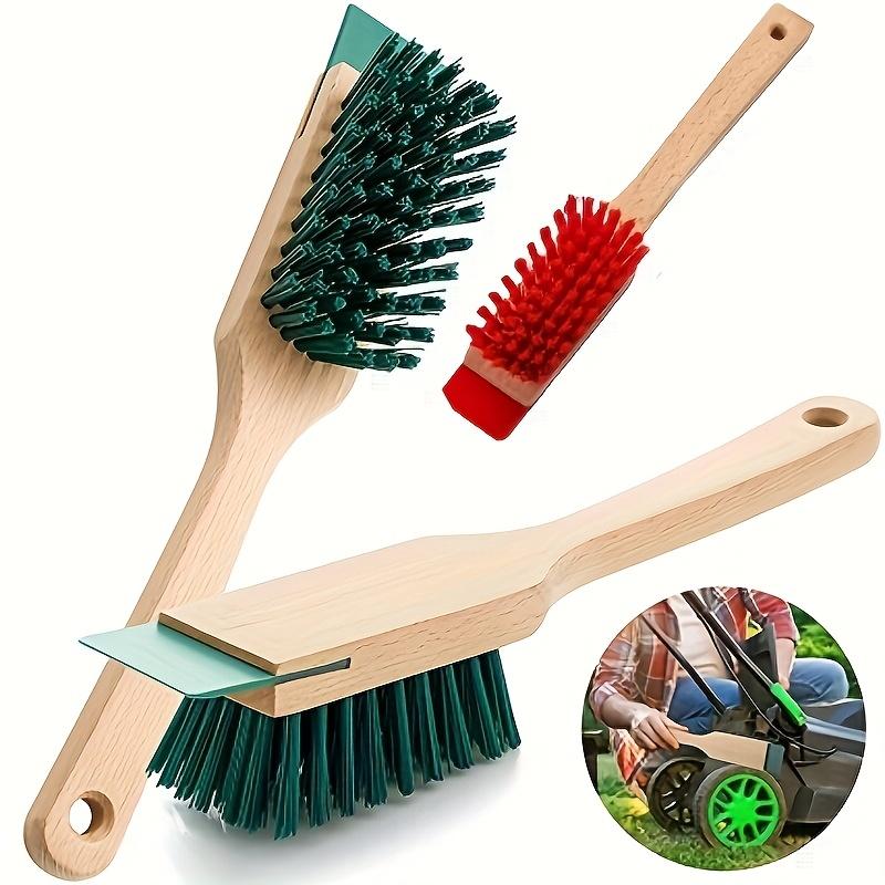 Multifunctional heavy-duty scrubber - Wooden scrubber, with bristles for cleaning, suitable for cleaning lawn mowers as well.