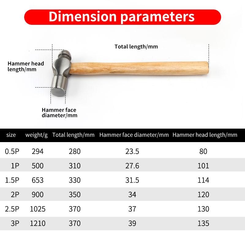 Круглый молоток из высокоуглеродистой стали, молоток с шарообразной головкой, молоток с носиком, хозяйственный инструмент, бытовой молоток с деревянной рукояткой 0.5P 1P 1.5P 2P 2.5P 3P