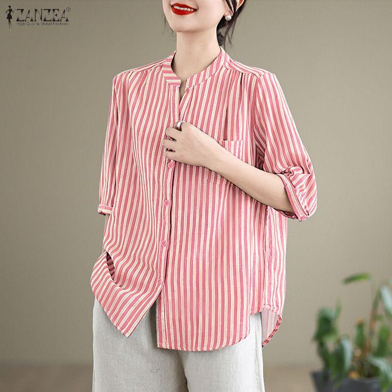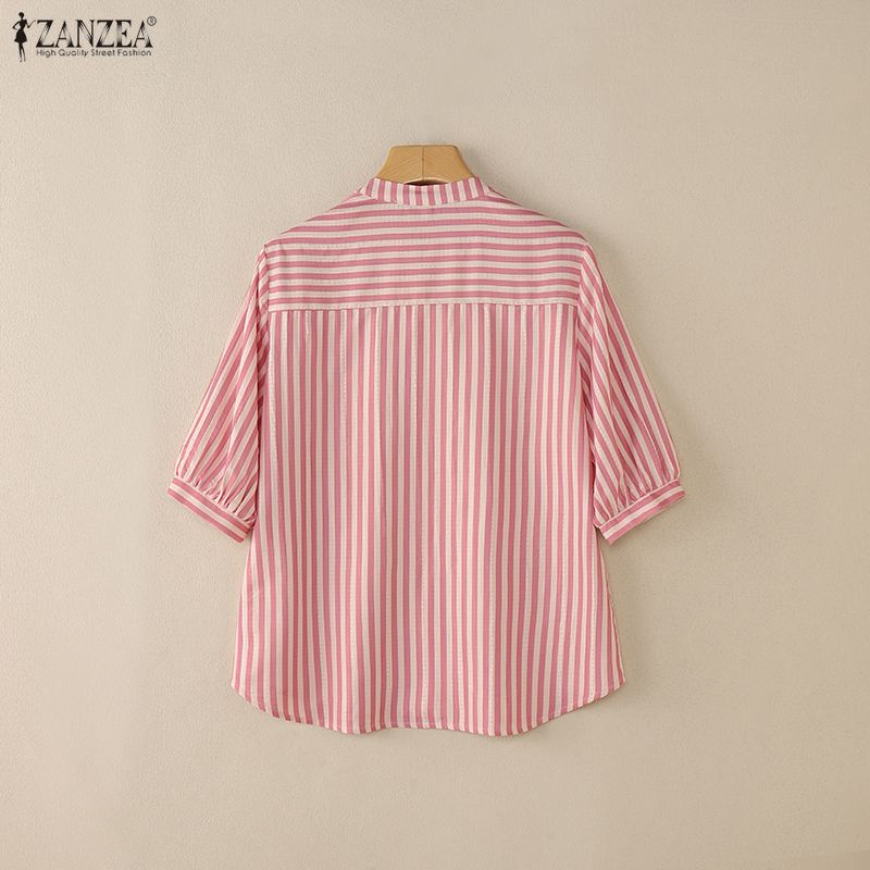 ZANZEA Женская повседневная блузка в полоску с V-образным вырезом и рукавом 3/4