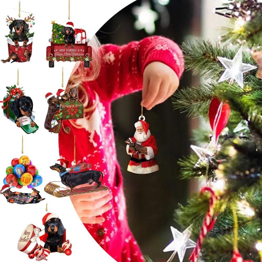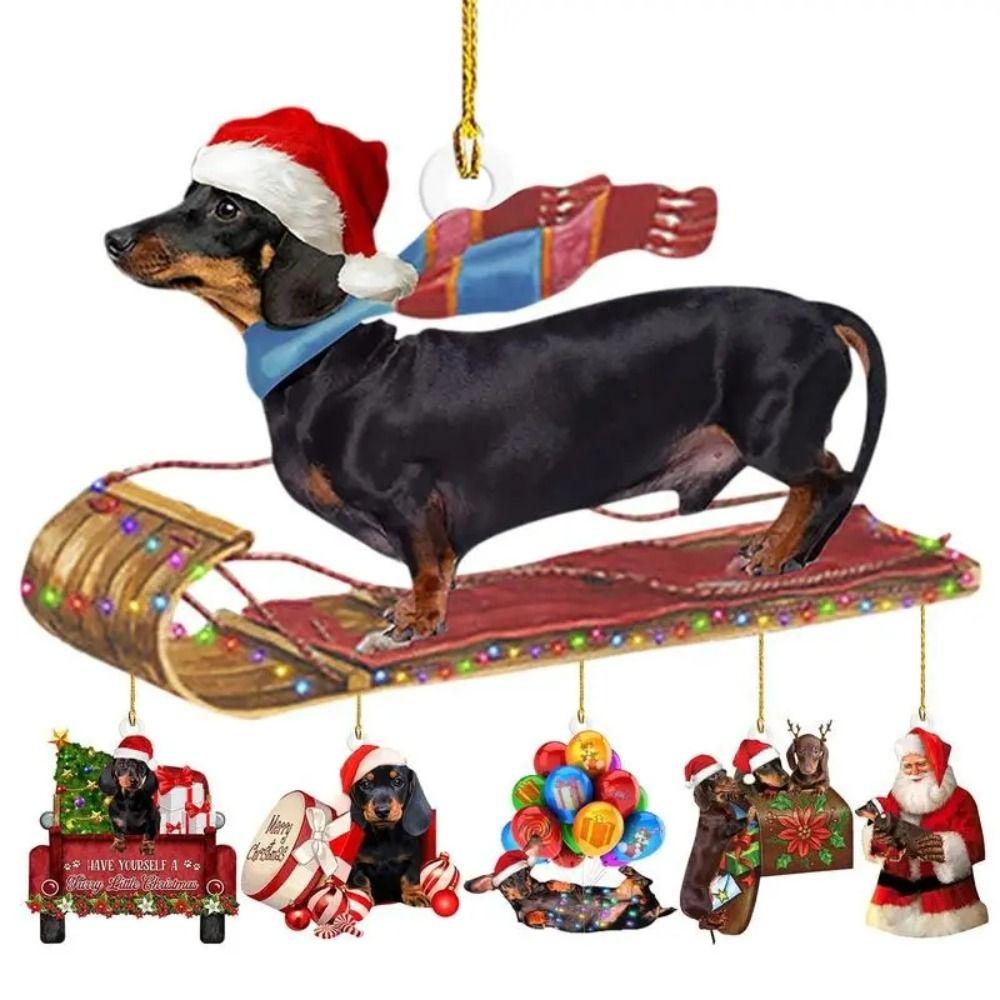 Акриловая Рождественская Подвеска Такса Ручной Работы Подвесные Украшения Рождественские Украшения Такса Автомобиль