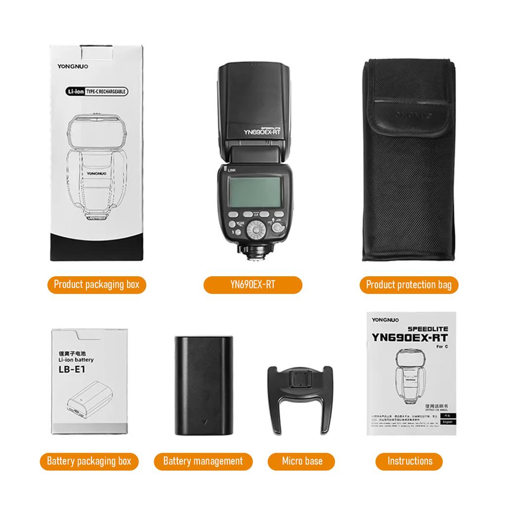 (Long lasting Lithium ion Battery) Equipped with a 2000mAh lithium ion battery and Type C quick charging design, the YN690EX RT speedlite offers convenient and efficient charging. With a full charge, it can fire at least 600 times, ensuring you never miss a shot.