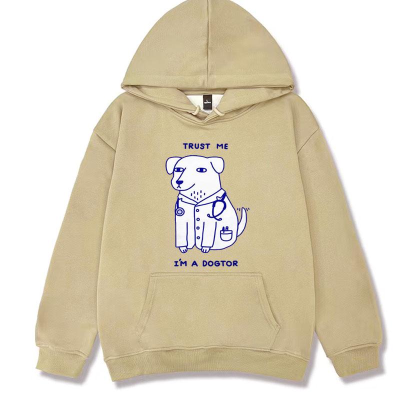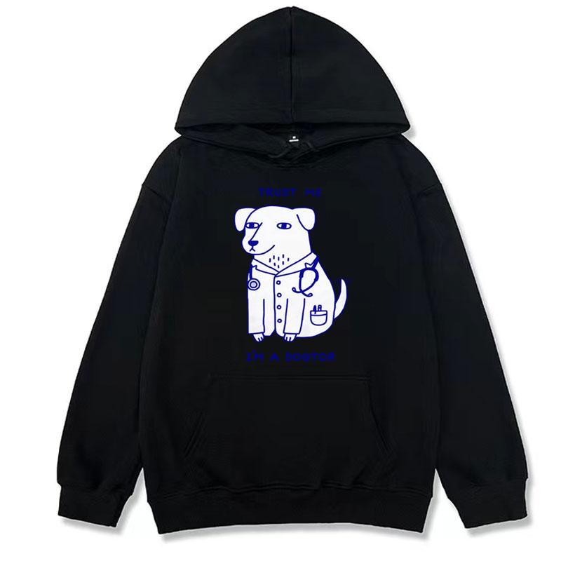 Trust Me I Am A Dogtor Meme Hoodies Funny Dog Doctor Cool Hoodie Streetwear Men Women's Retro Casual Fleece Humor Sweatshirt Y2k