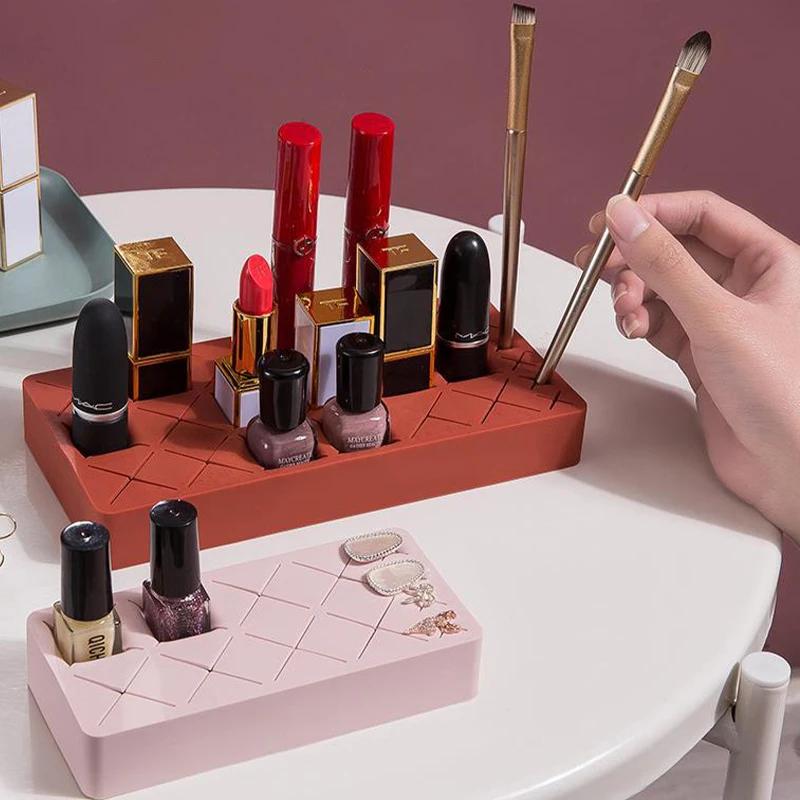 Silicone Lipstick Organizer Modular Cosmetic Storage for Lip Gloss Brow Pencils Vanity Countertop Makeup Display Holder
