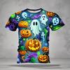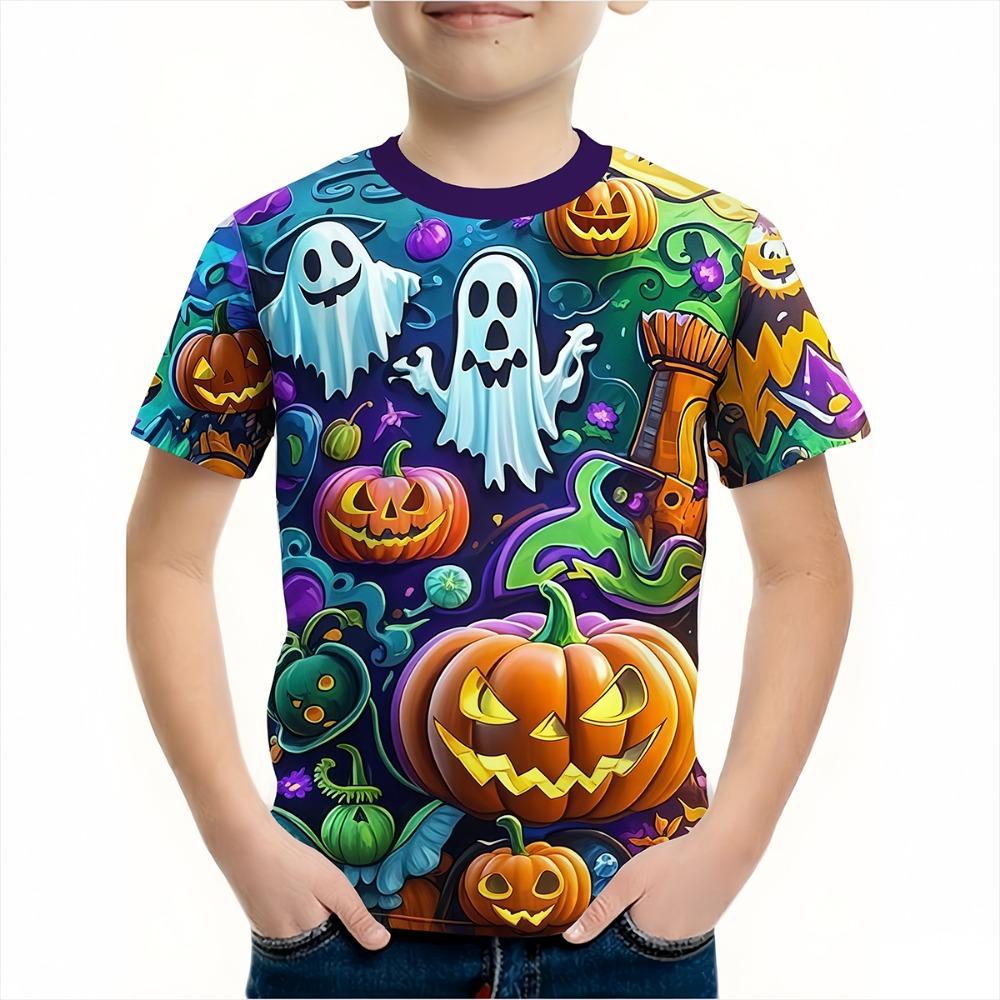 Boys' clothing, funny and terrifying pumpkin pattern T-shirt, boys' and girls' Halloween short sleeved shirt, children's Halloween gift party T-shirt
