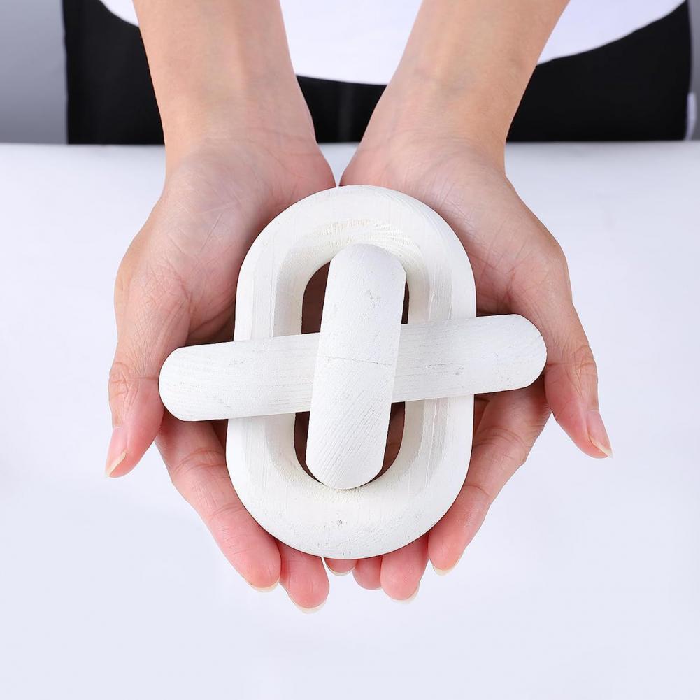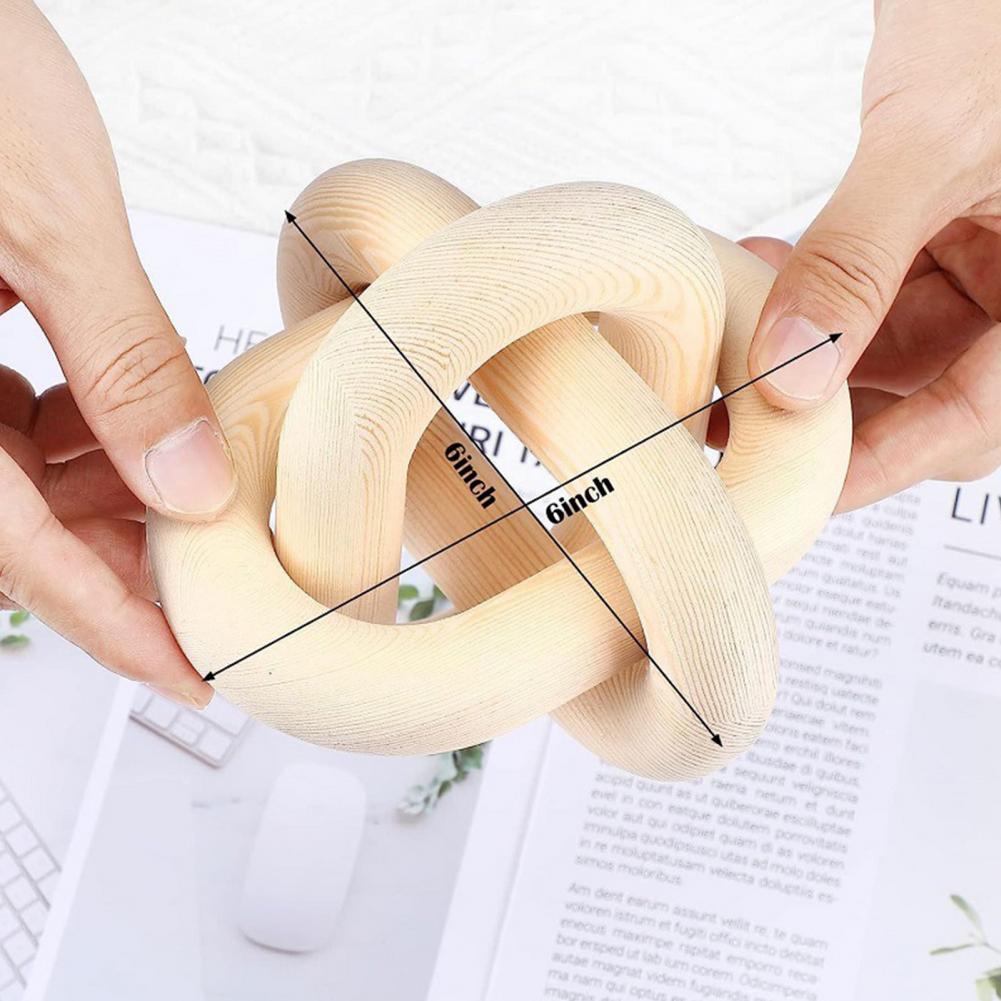 Wood Knot Decor Rustic Farmhouse Accent Hand Carved 3-Link Wood Chain Link Decor Living Room Bedroom Office Coffee Table Decor