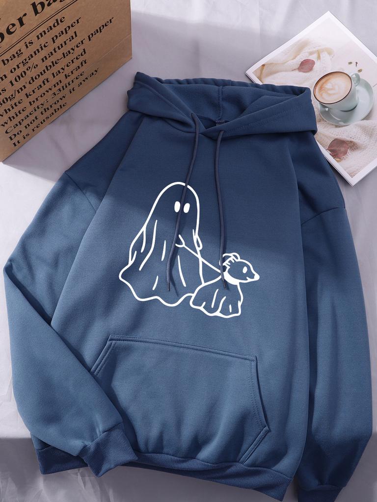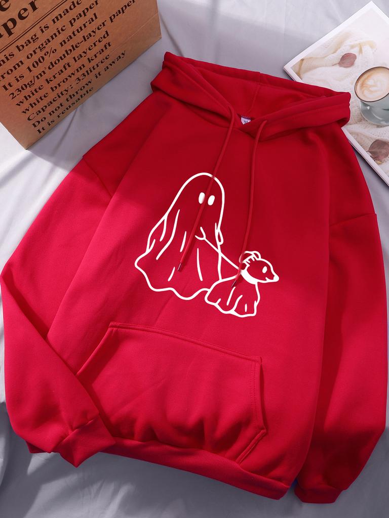 Худи с принтом «Маленький дьявол ведет собаку» для женщин, удобные, с карманом, с капюшоном, зимние, флисовые, теплые, базовые, спортивные