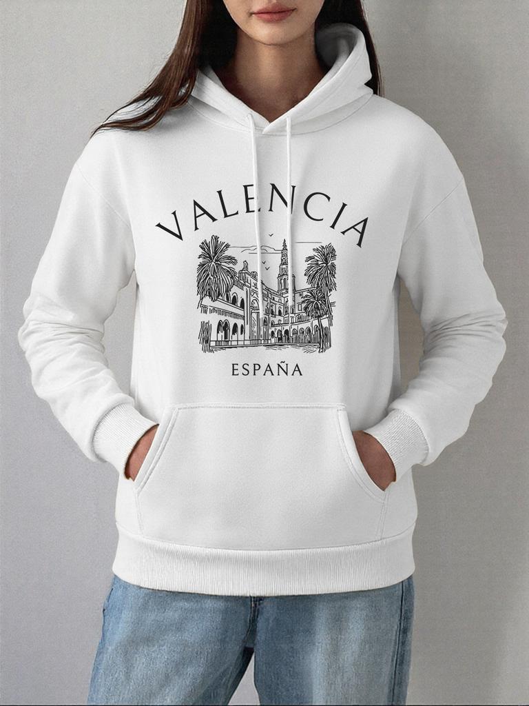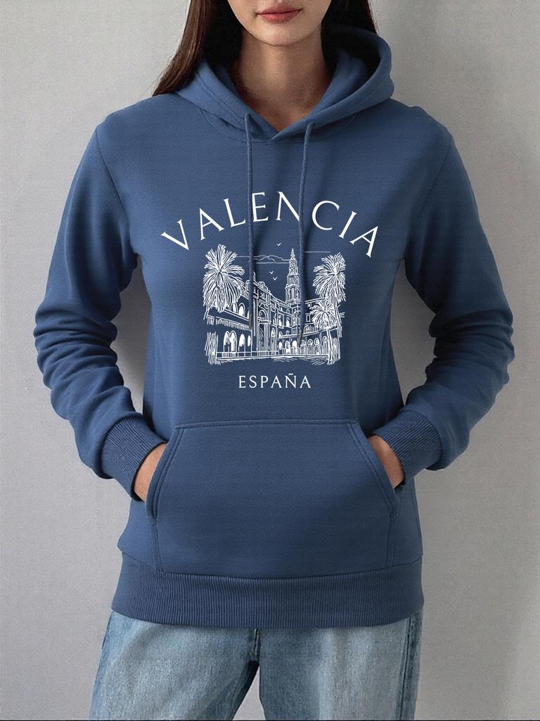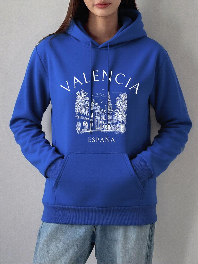 Валенсия Испания Местная печать Толстовки Женские Зимние Флисовые Теплые Пуловеры Повседневные Свитшоты с Карманами Удобная Свободная Одежда