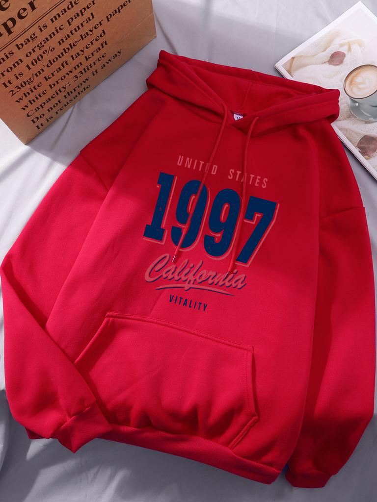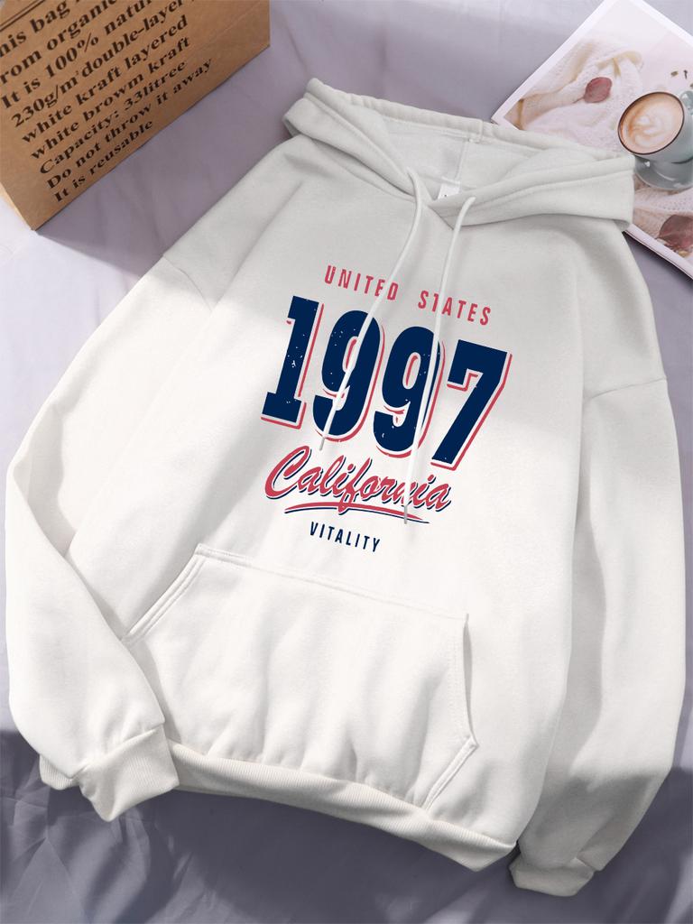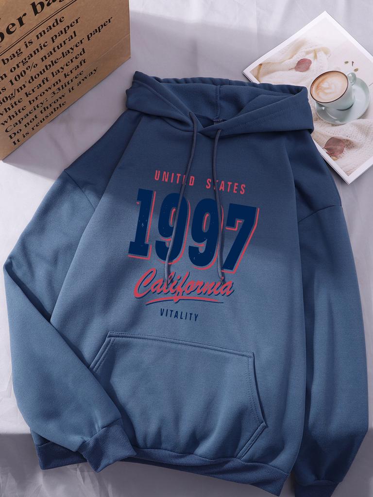 США 1997 Калифорния Виталити Принт Толстовки Женские Повседневные Флис Теплые С Капюшоном Базовые Карманы Топы Зимняя Спортивная Женская Одежда