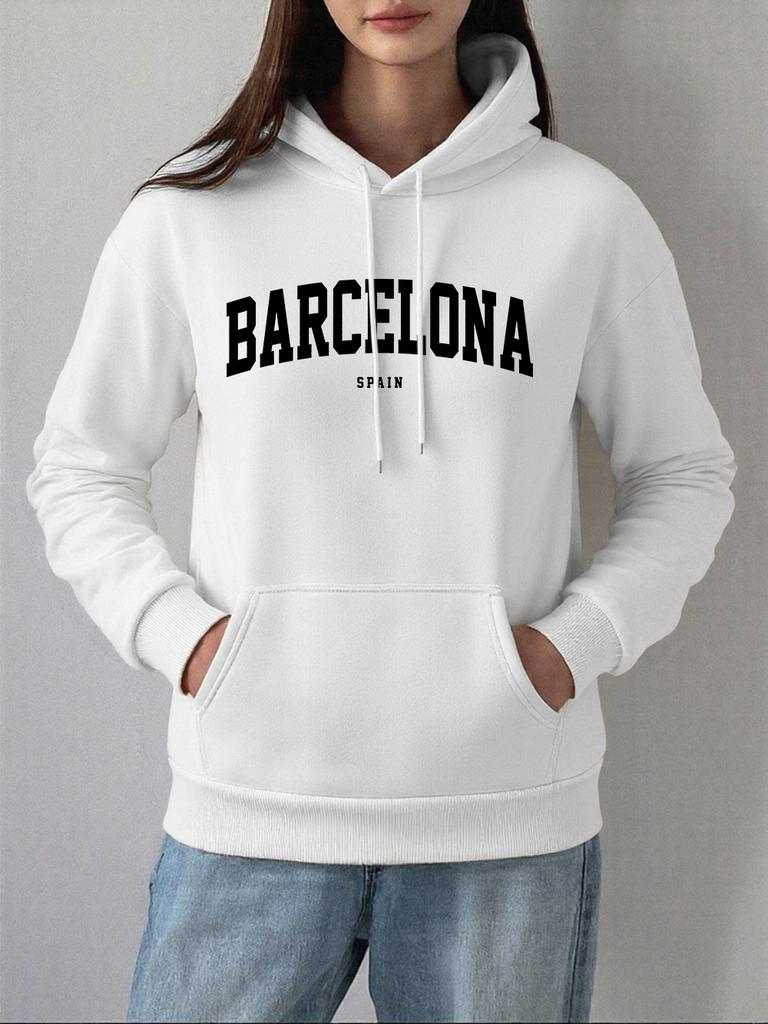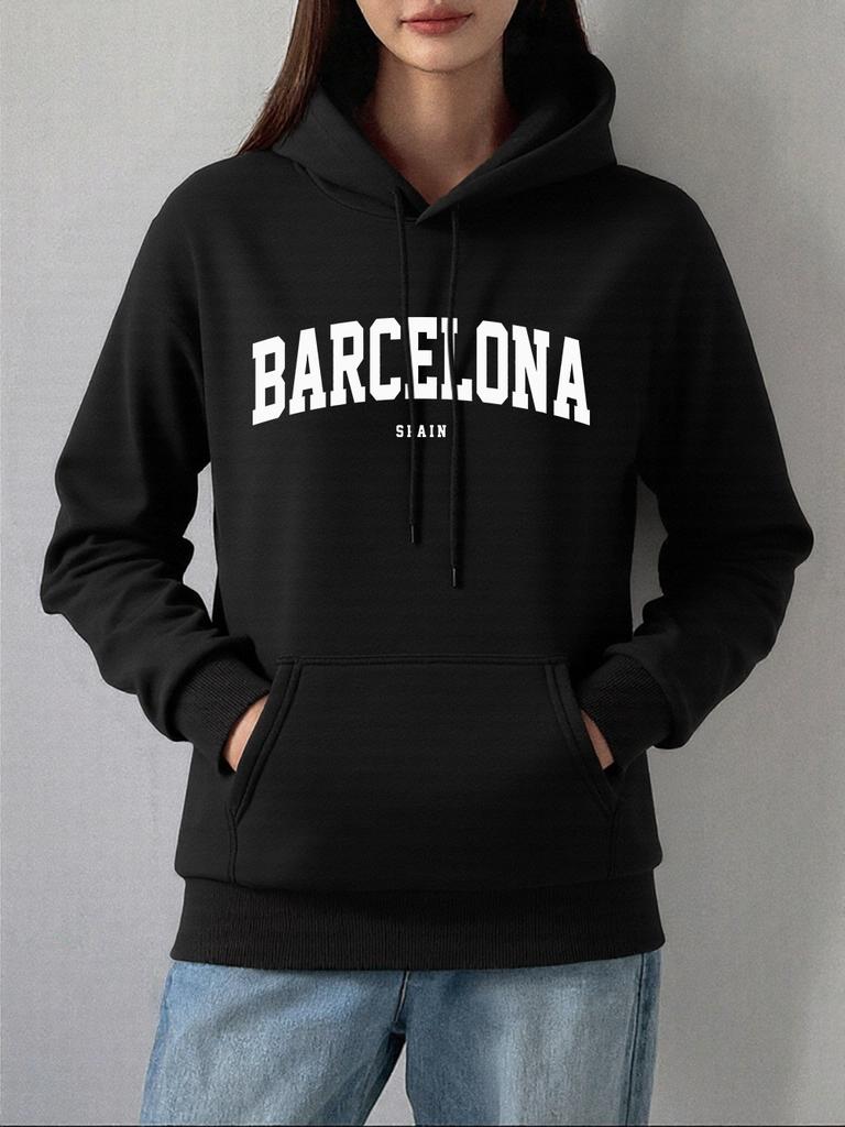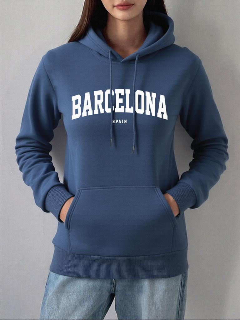 Барселона Испания Печатные Худи Женские Зимние Флисовые Теплые Свитшоты Удобные Повседневные Пуловеры Базовые С Карманом Женская Одежда