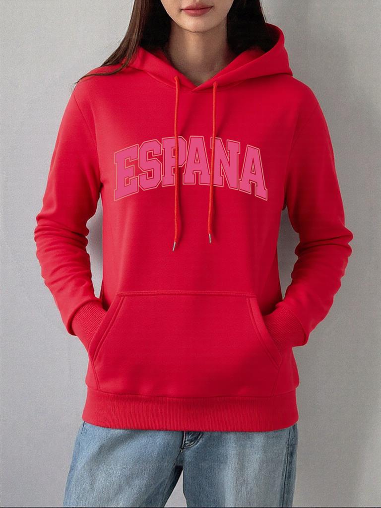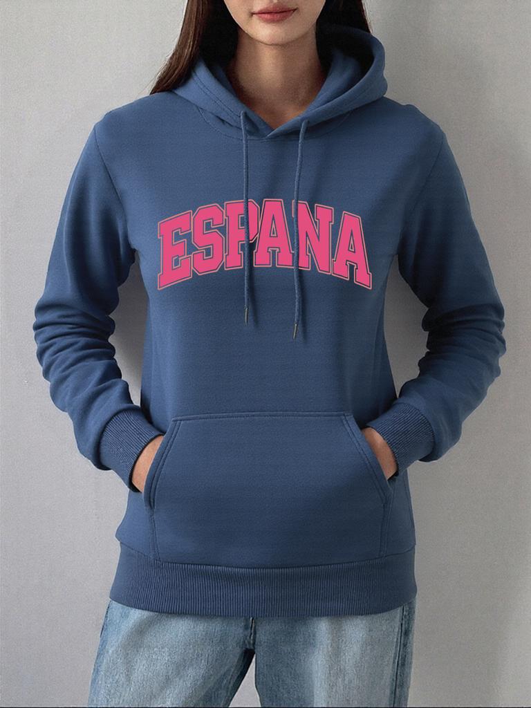 España Letter Classics Printed Hoodie Women Comfortable Loose Sweatshirt Fleece Warm Soft Pullover Casual Pocket Womans Clothes