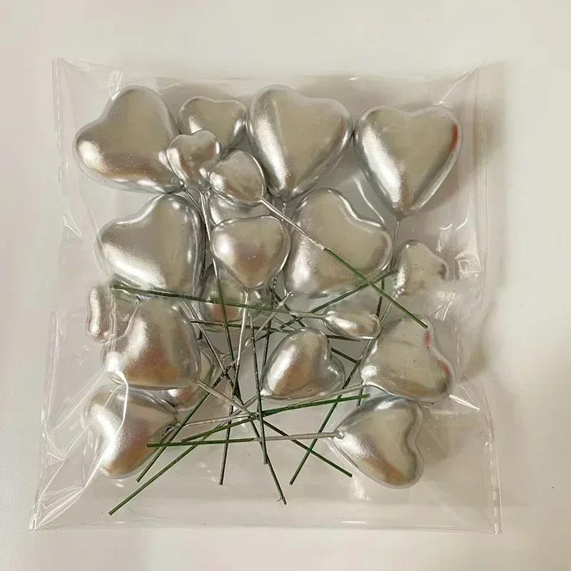 20PCS Heart & Ball Shape Cake Topper Mix Size Gold Silver Birthday Cake Flag DIY Valentine's Day Cupcake Dessert Decorations