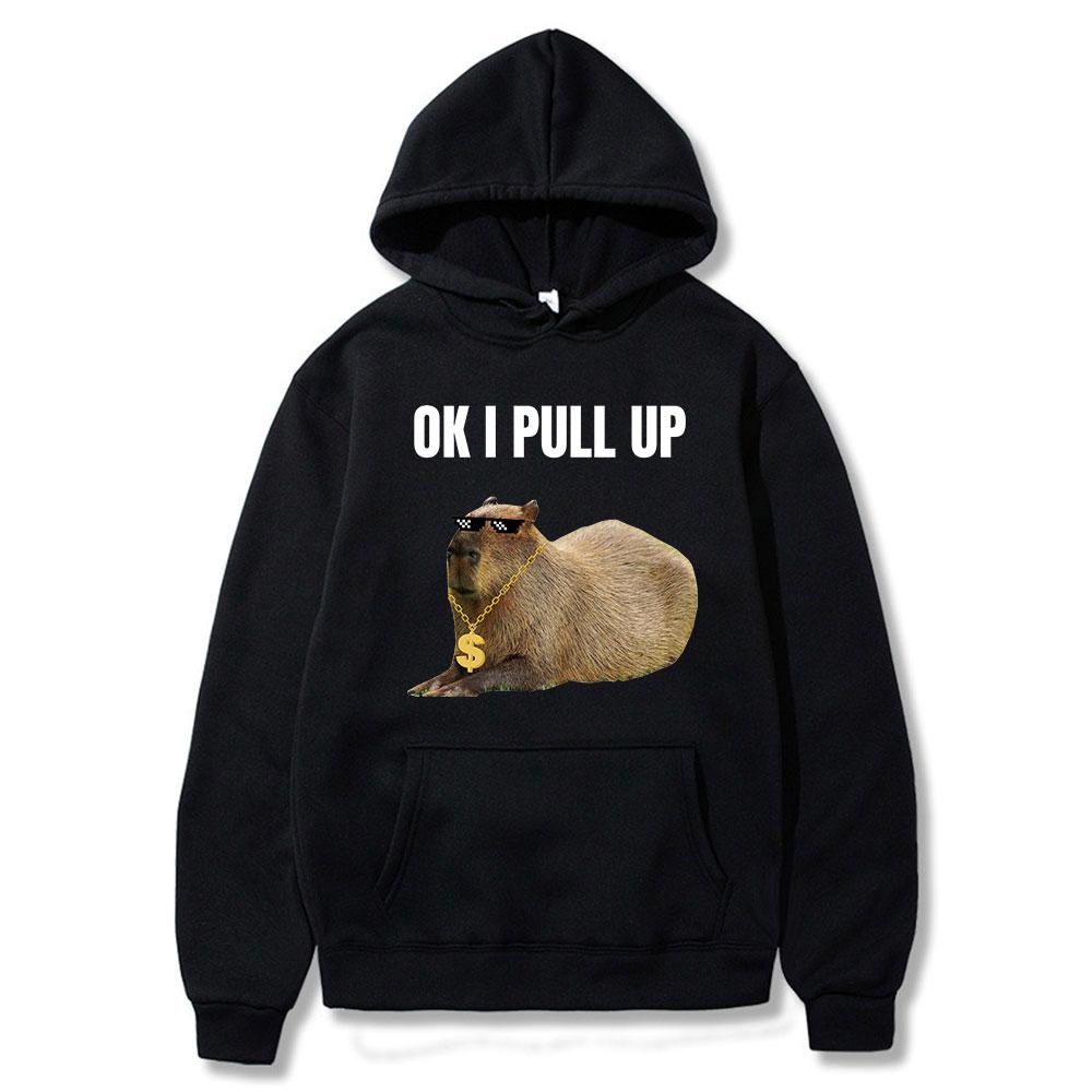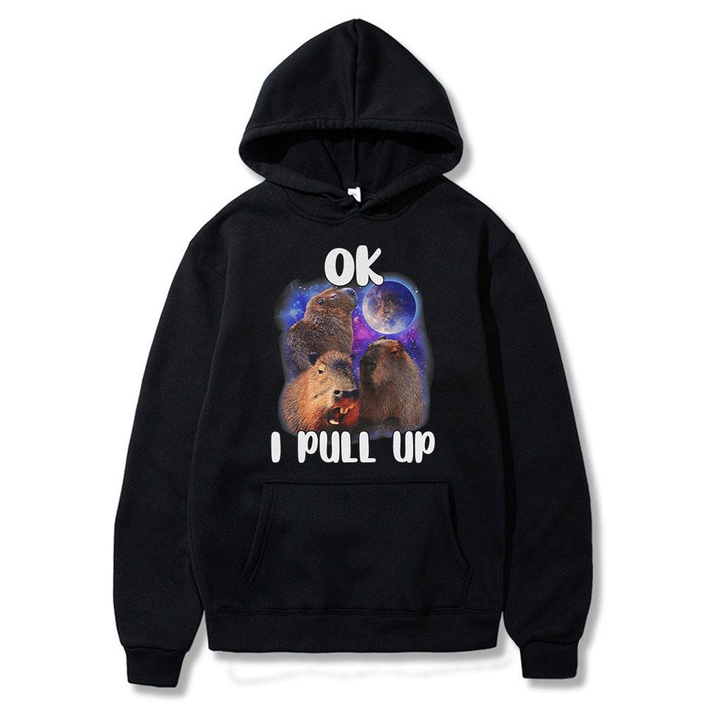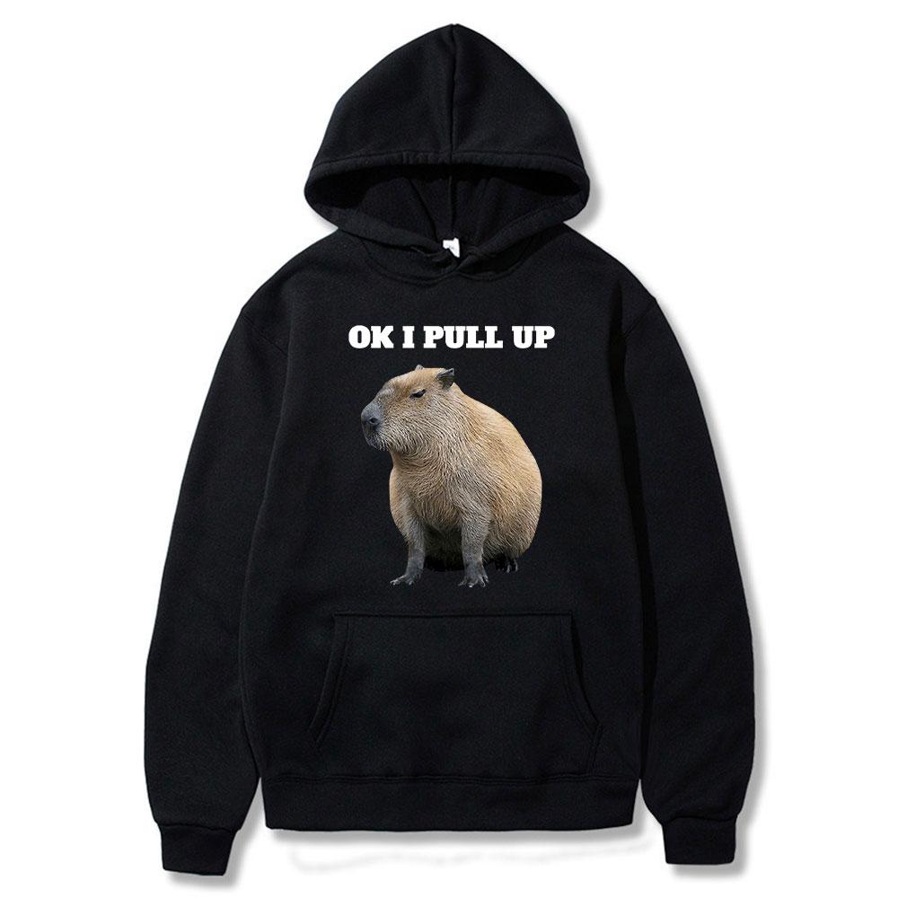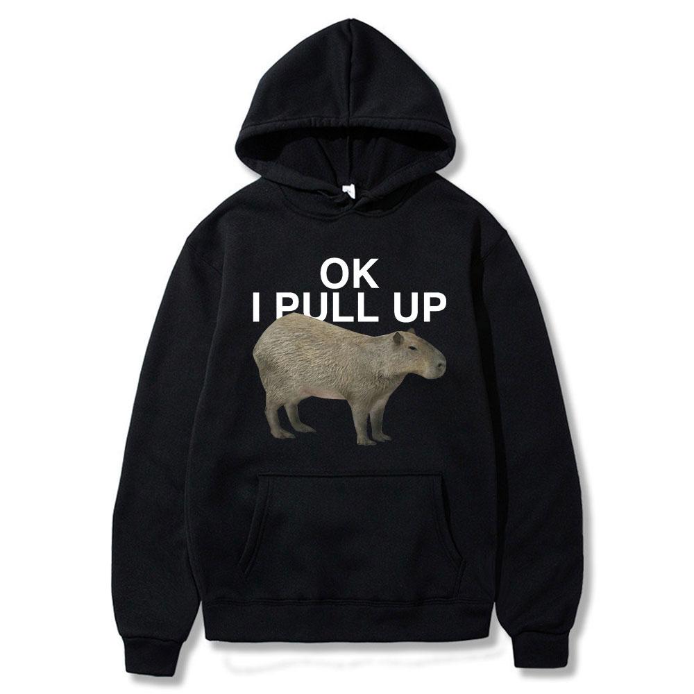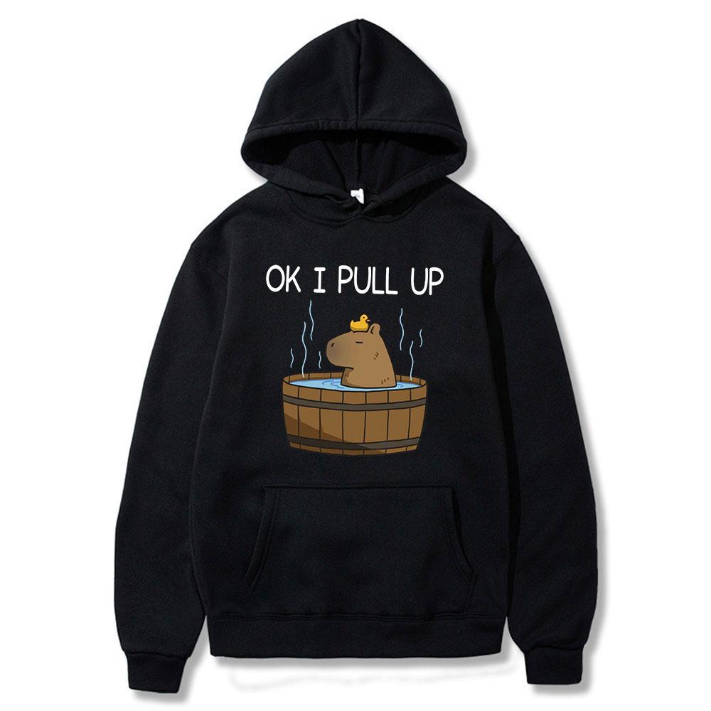 Funny Ok I Pull Up Capybara Print Hoodie Men's Fashion Casual Oversized Hooded Sweatshirts Gothic Pullovers Clothes for Teens