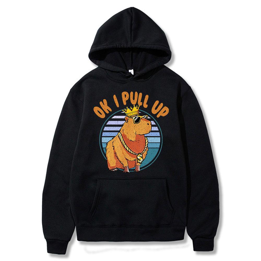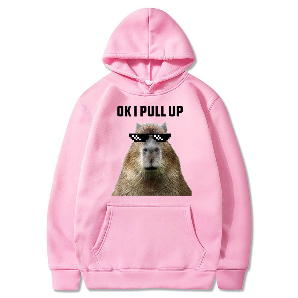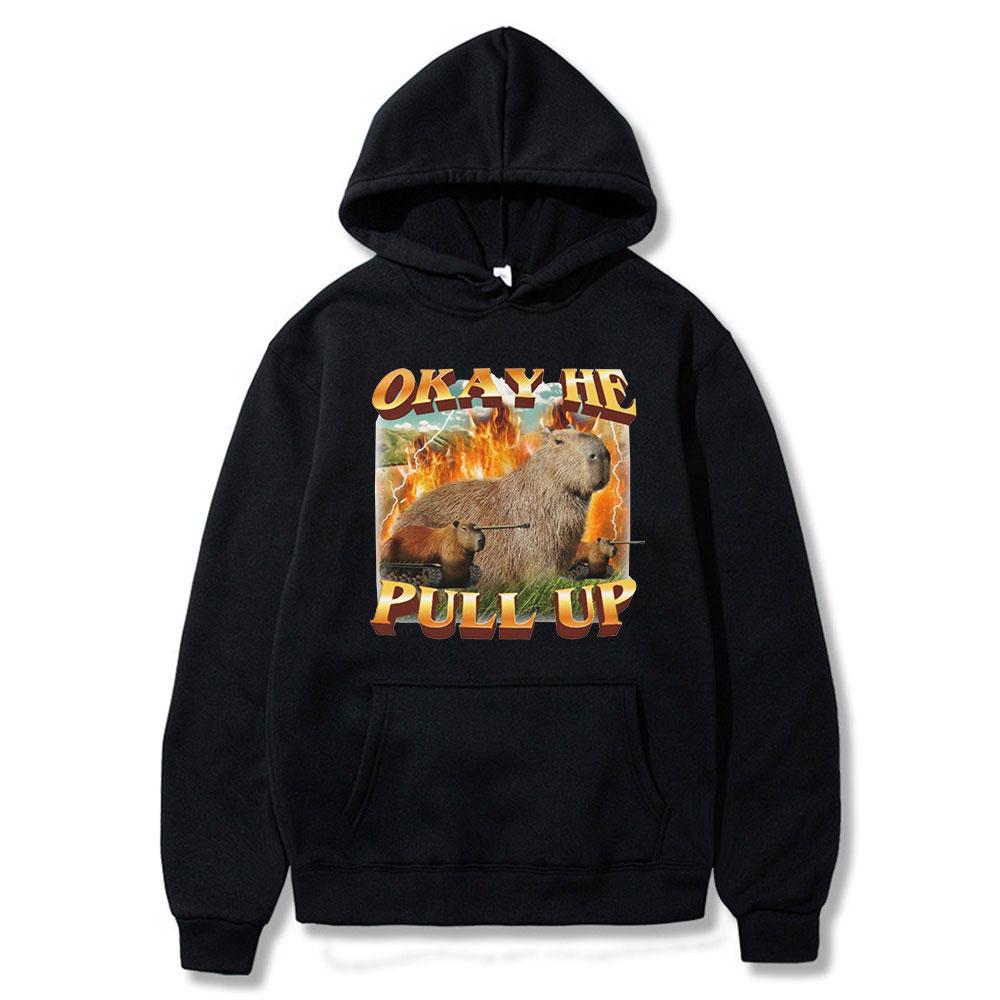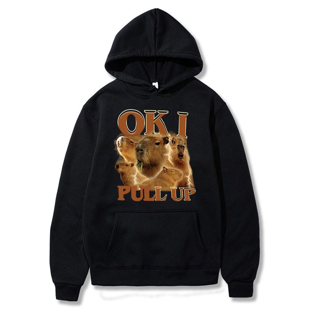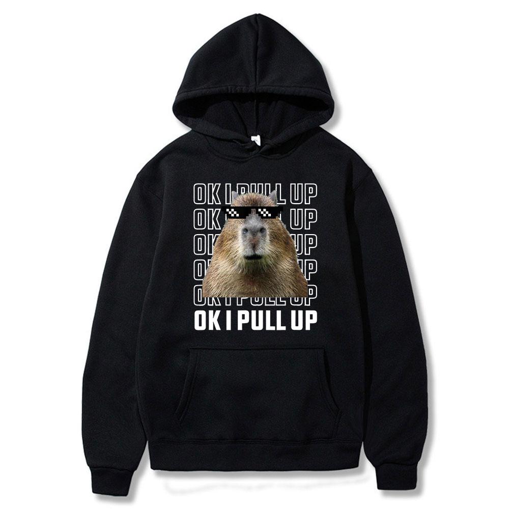 Funny Ok I Pull Up Capybara Print Hoodie Men's Fashion Casual Oversized Hooded Sweatshirts Gothic Pullovers Clothes for Teens