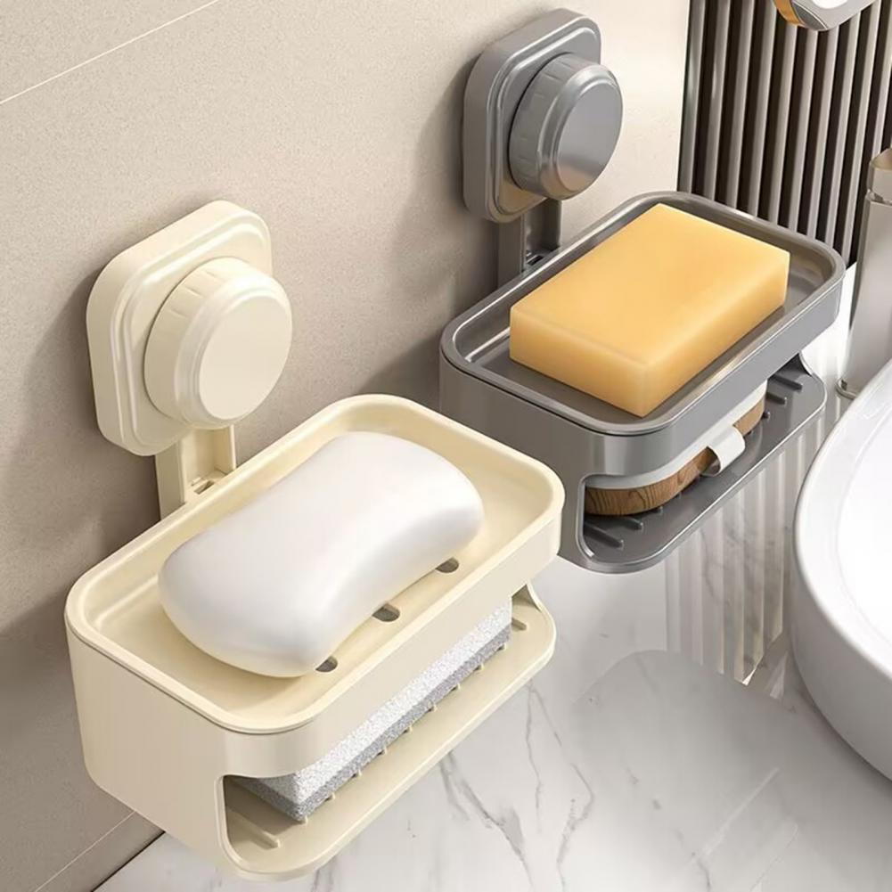 Мыльница Двухъярусная на Присоске с Дренажными Отверстиями для Ванной Настенная Самоочищающаяся Аксессуары для Ванной