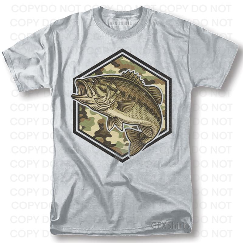 Bass Fishing Shirt Camo Fathers Day Gift Graphic T-Shirt