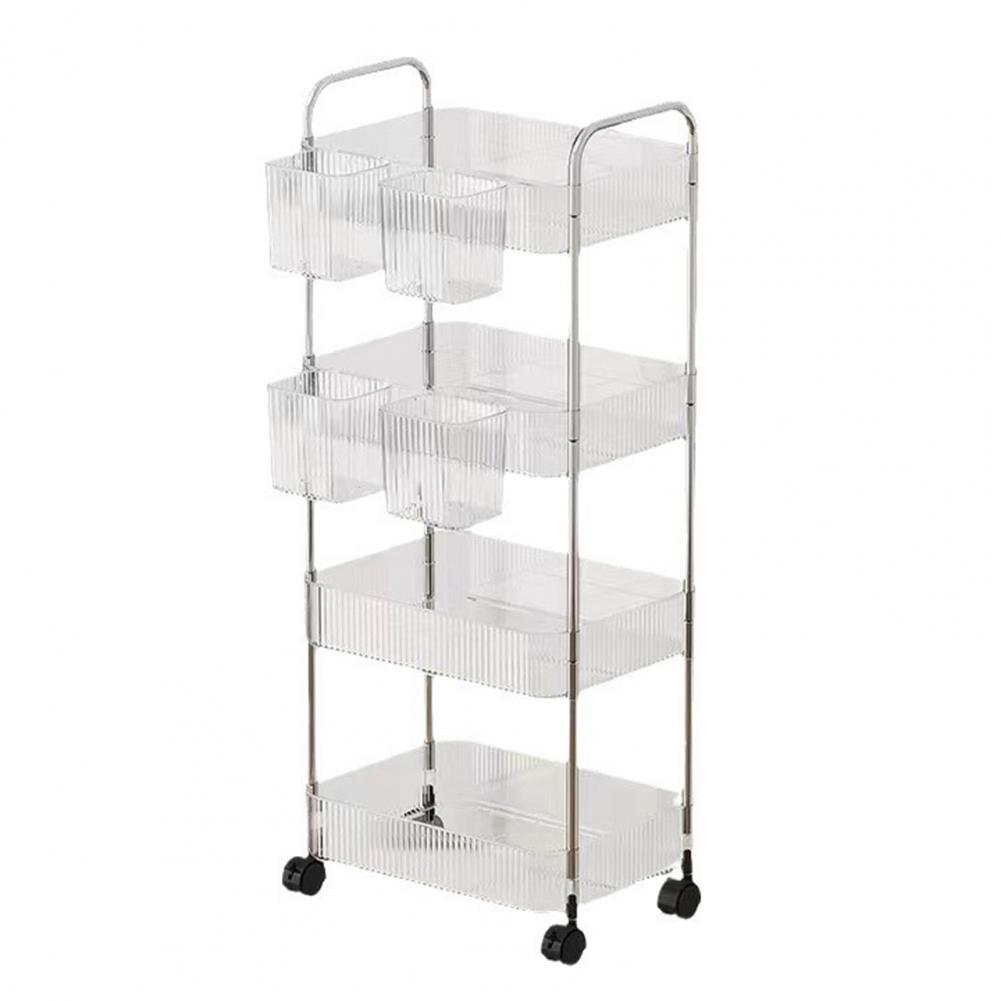 Прозрачная стойка для хранения Перекатная тележка Стойка для хранения Прозрачная полка для ванной комнаты с подвесными корзинами Колеса