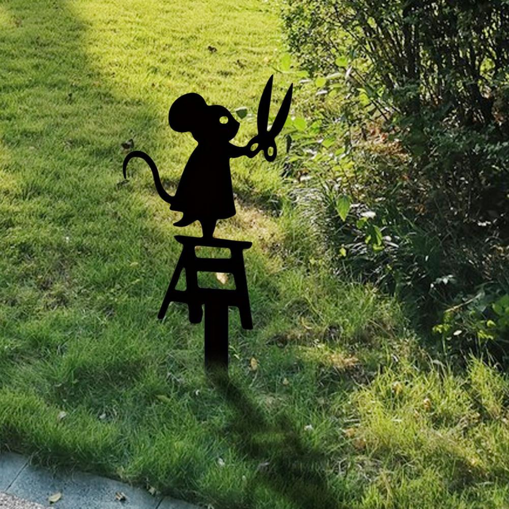 Garden Stake Decoration Outdoor Yard Sign Decorative Metal Ant Garden Stake with Mouse Silhouette Scissors Design