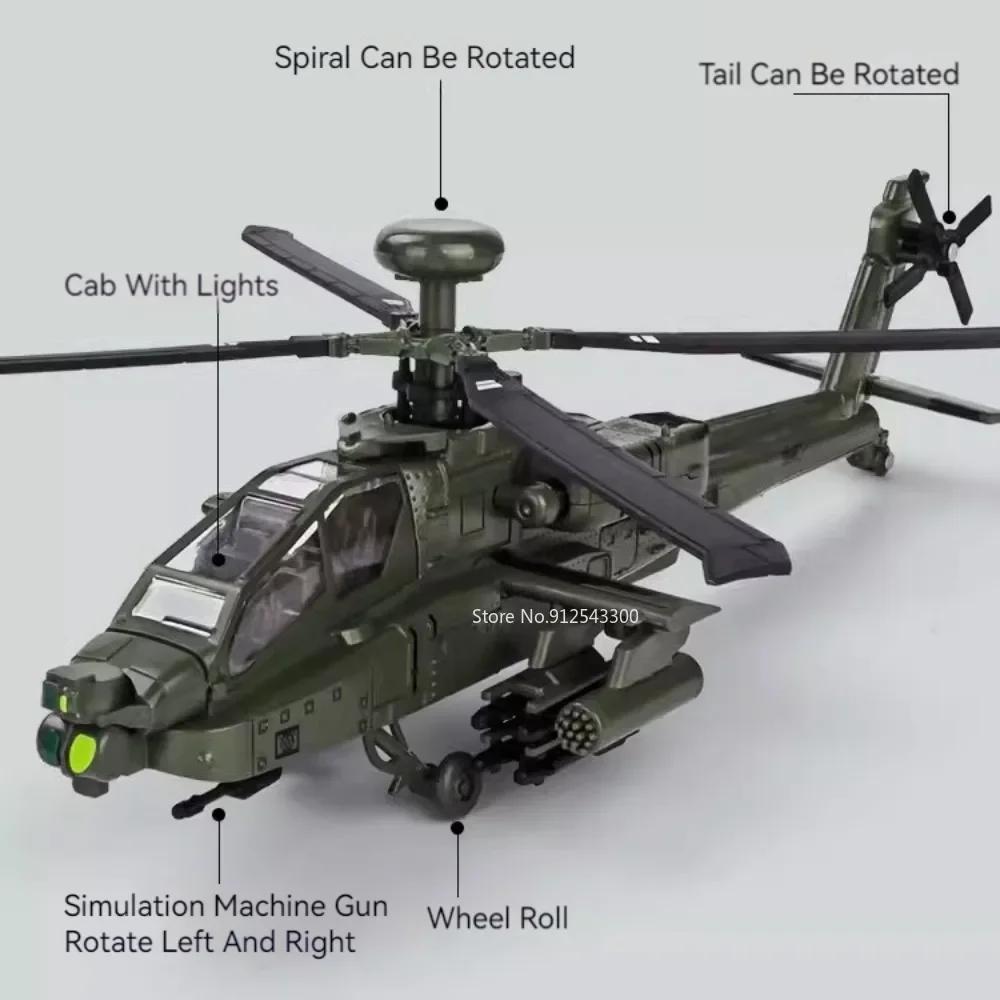 Масштаб 1:32 AH-64A Модель самолета Игрушечная машинка Литье под давлением Металл Звук Свет Вращающееся хвостовое оперение Модели истребителей Подарки на фестиваль для мальчиков