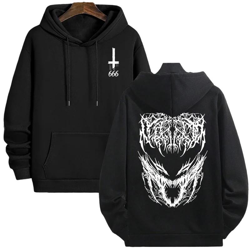 Осень Зима Повседневная Спортивная Верхняя одежда Мужская Городская Мода Топ 2025 Горячая Распродажа Мужская Толстовка с Капюшоном Сатана 666 Печатные Худи