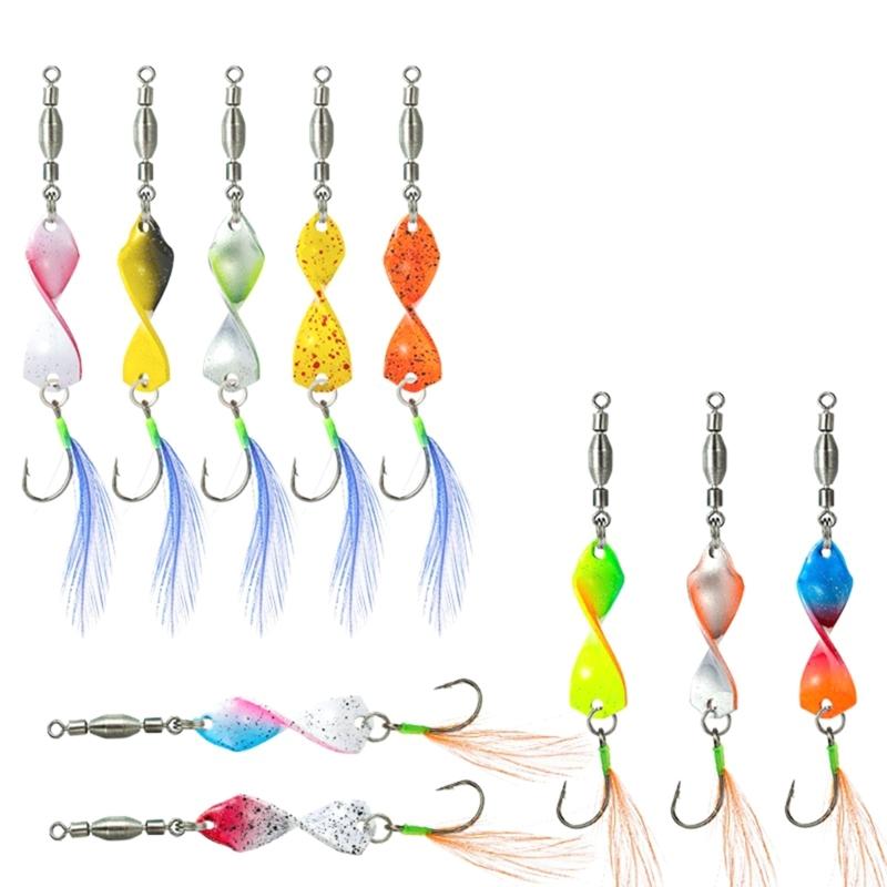 10 шт. Вращающиеся жесткие приманки, вращающийся воблер 360 градусов, джиговые приманки, блесны, искусственные спиннербейты с оперенным крючком