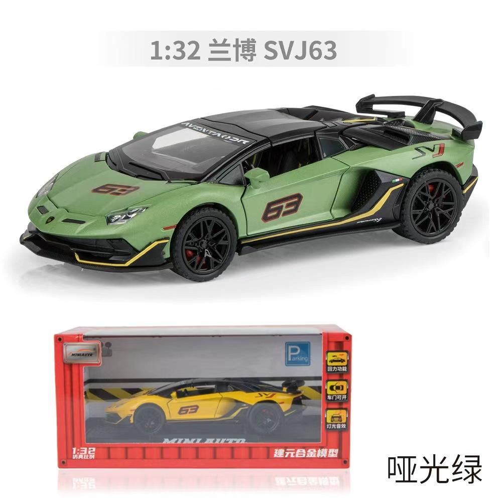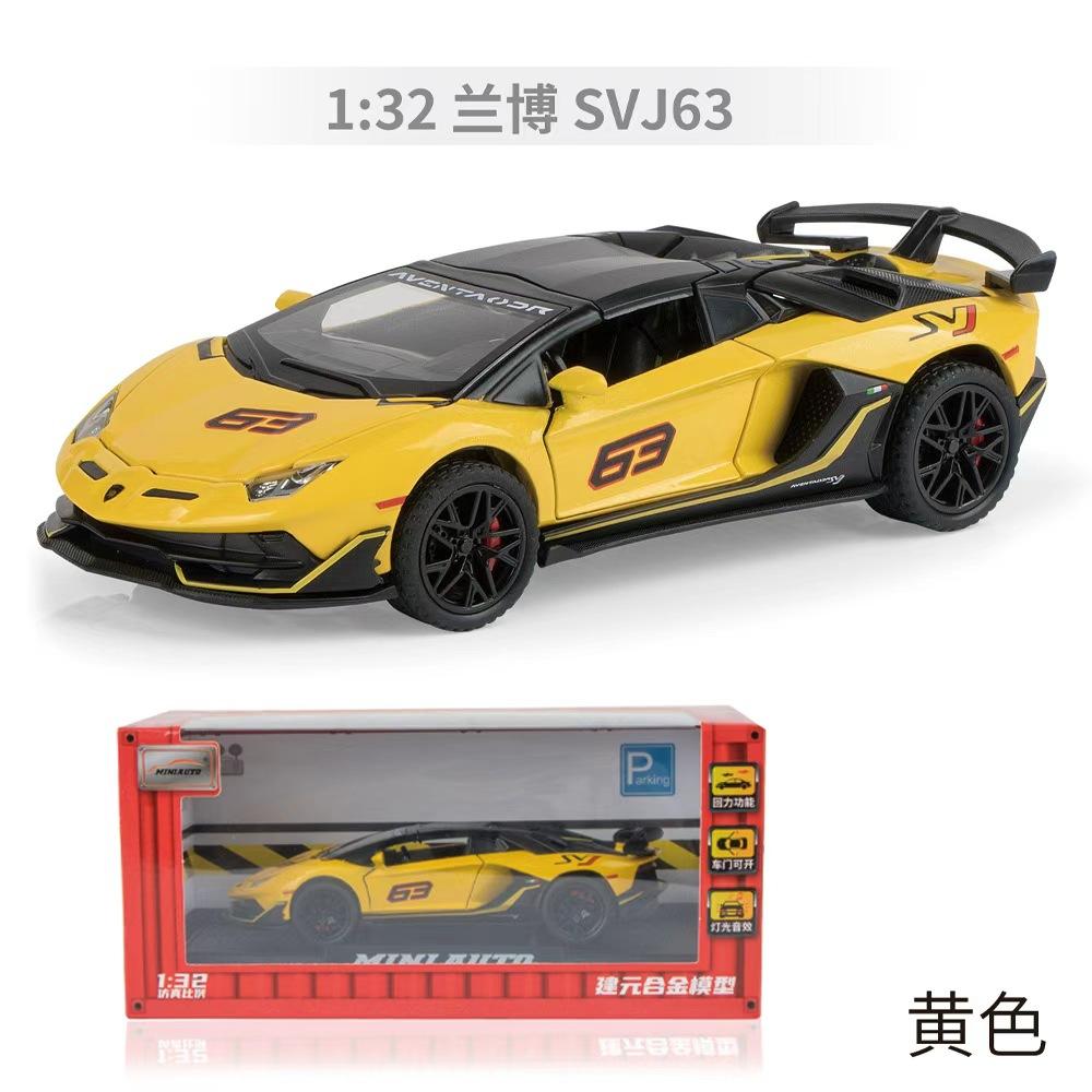 1:32 SVJ63 Roadster Sound and Light Pull Back Toy Model Ornament Diecast Alloy Car Model Collectible