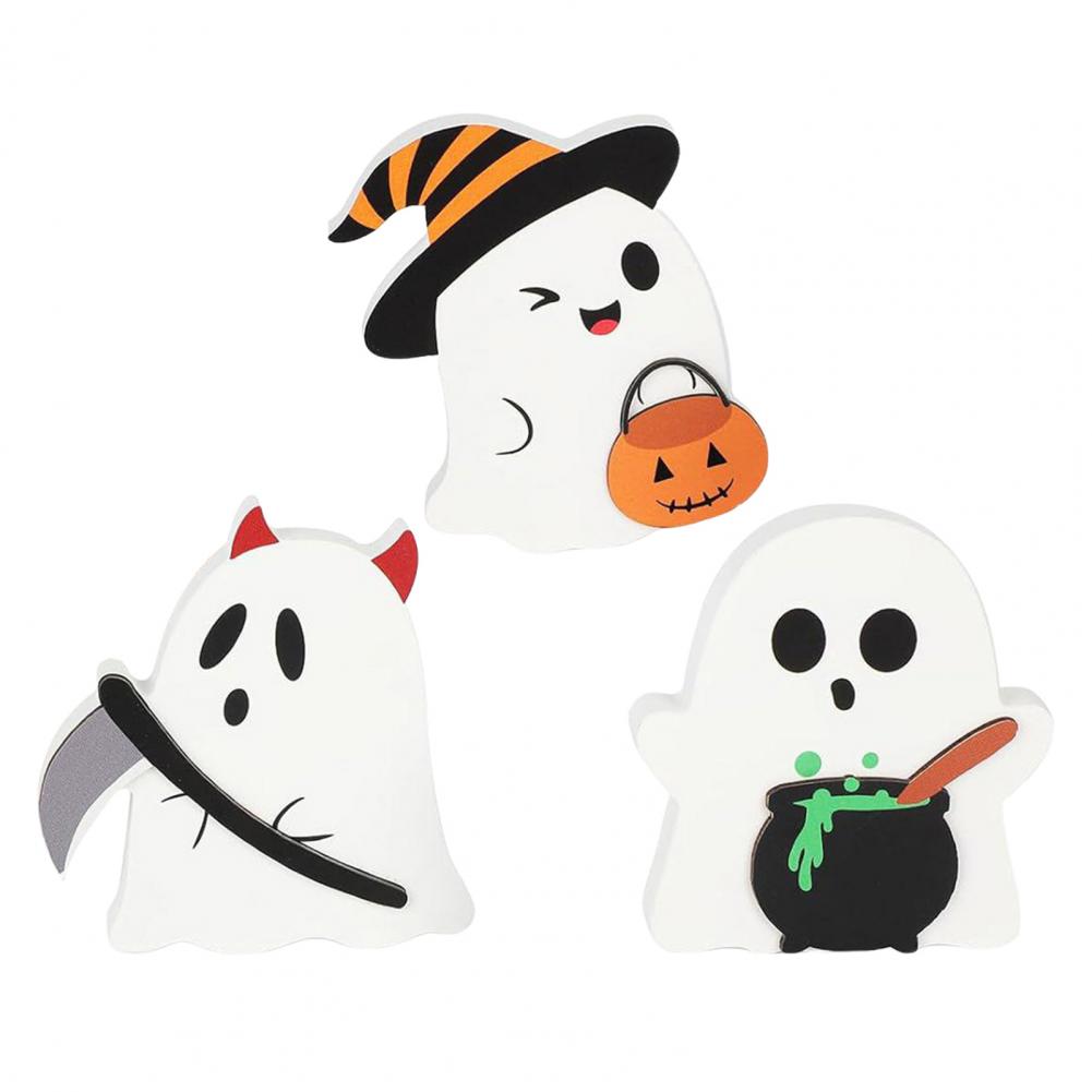 Halloween Ghost Decoration Funny Ghost Decor Handmade Halloween Ghost Decor Set for Fall Party Mantel Table Wooden Ornament Sign