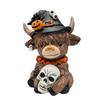 Highland Cow Ornament Highland Cattle Statue Halloween Highland Cow Figurine with Pumpkin Skull Resin Sculpture