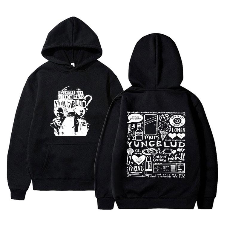 Rock Singer Yungblud Is There Any Life on Mars Double Sided Print Hoodie Male Casual Sweatshirt Men's Vintage Popular Hoodies