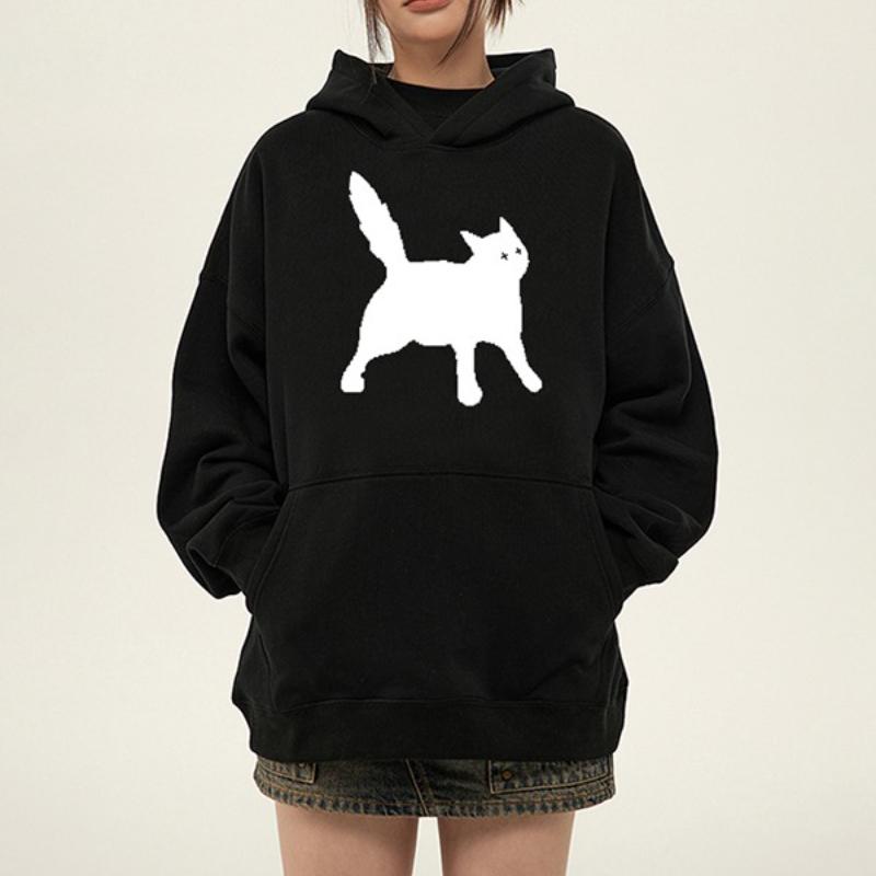 Американская мода Новая печать с кошачьим узором Мужская и женская осенне-зимняя трендовая толстовка Свободный большой размер Теплый топ