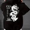 Vintage Black Hooded Sweatshirt with Back Red Dragon Wrapping Katana Sword Graphic Print — купить товар онлайн с бесплатной доставкой по всему миру!