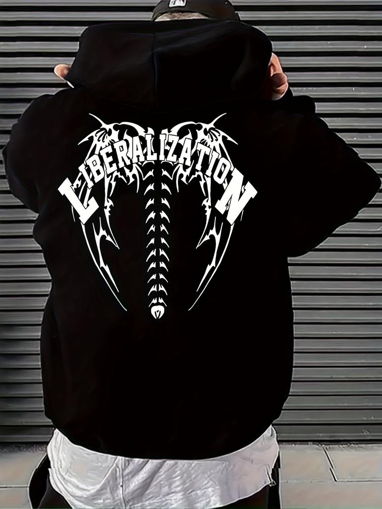 Мужская толстовка с капюшоном с рисунками скелета позвоночника и племенных крыльев - Слоган "ЛИБЕРАЛИЗАЦИЯ" Уличная мода