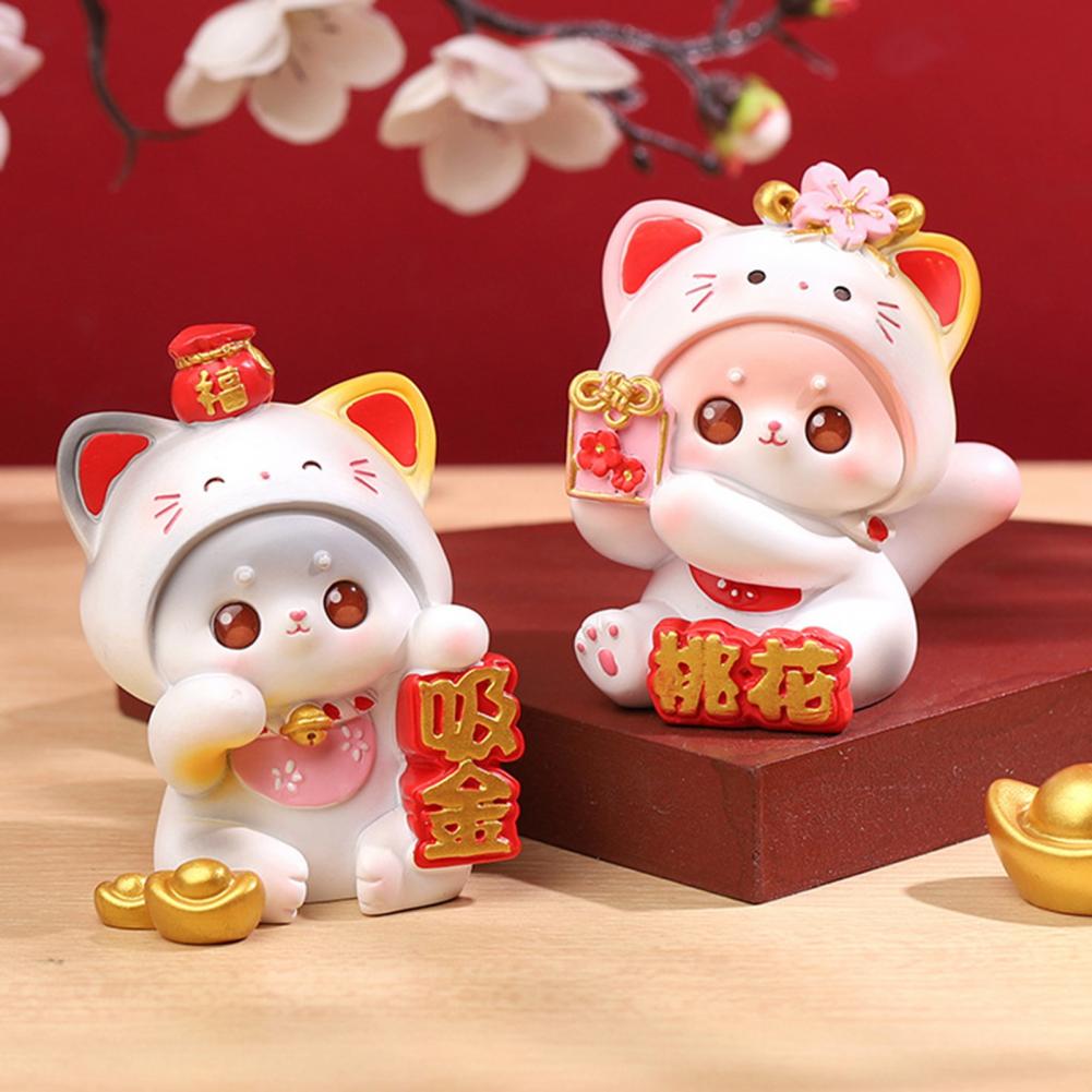 Мультяшная скульптура кошки Китайский счастливый кот, машущий лапой, Расписанная вручную декоративная смоляная настольная статуэтка, Подарок, Офисные принадлежности