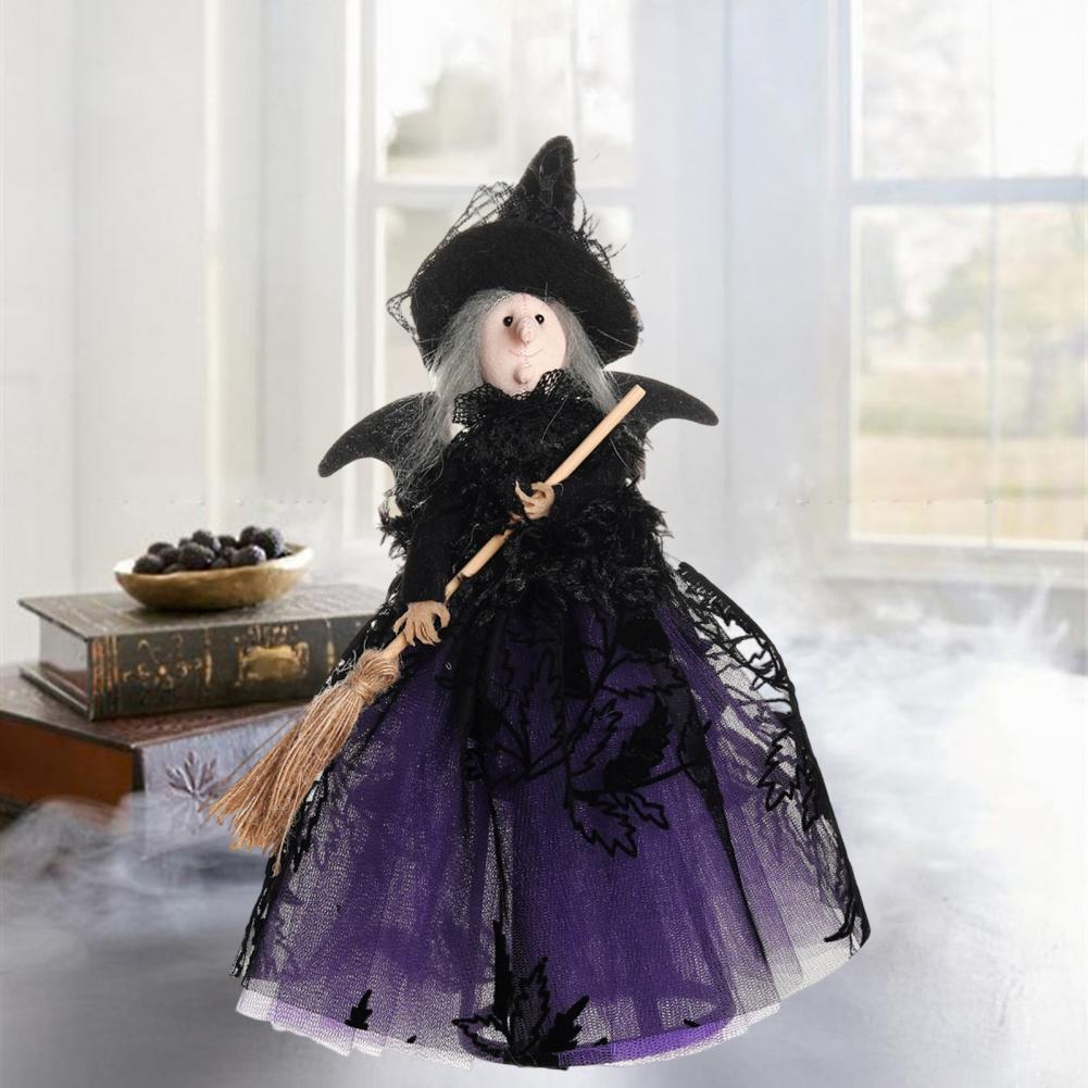 Коническое основание Украшение ведьмы Жуткая кукла ведьмы на Хэллоуин с метлой Юбка из марли Маленькая фигурка для домашнего декора Вечеринок Карнавалов