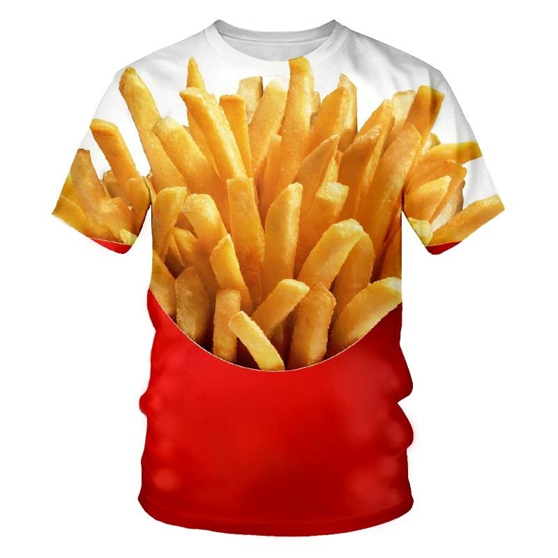 Creative Food Pattern T-Shirts Hamburg Pizza Steak French Fries Men's Summer T-Shirts Short Sleeve 3D Printed T-Shirts