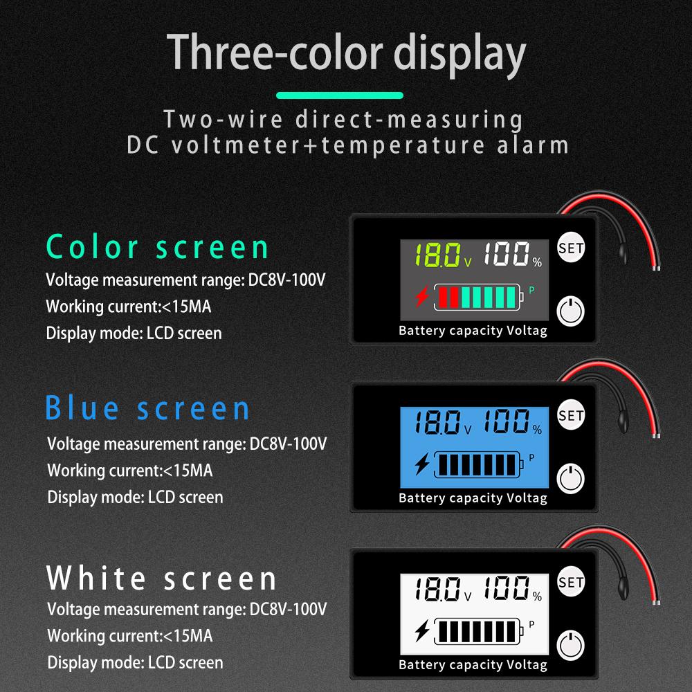 Вольтметр емкости аккумулятора DC 8В-100В Индикатор Измеритель мощности Литиевый LiFePO4 свинцово-кислотный Элемент 12В 24В 48В с температурной сигнализацией — купить товар онлайн с бесплатной доставкой по всему миру!