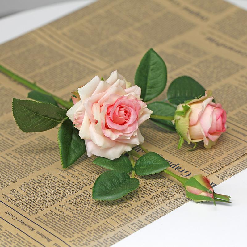 5 шт. искусственных розовых цветов 3 головки высококачественные искусственные розы яркие имитационные цветы для украшения домашнего офиса и вечеринки