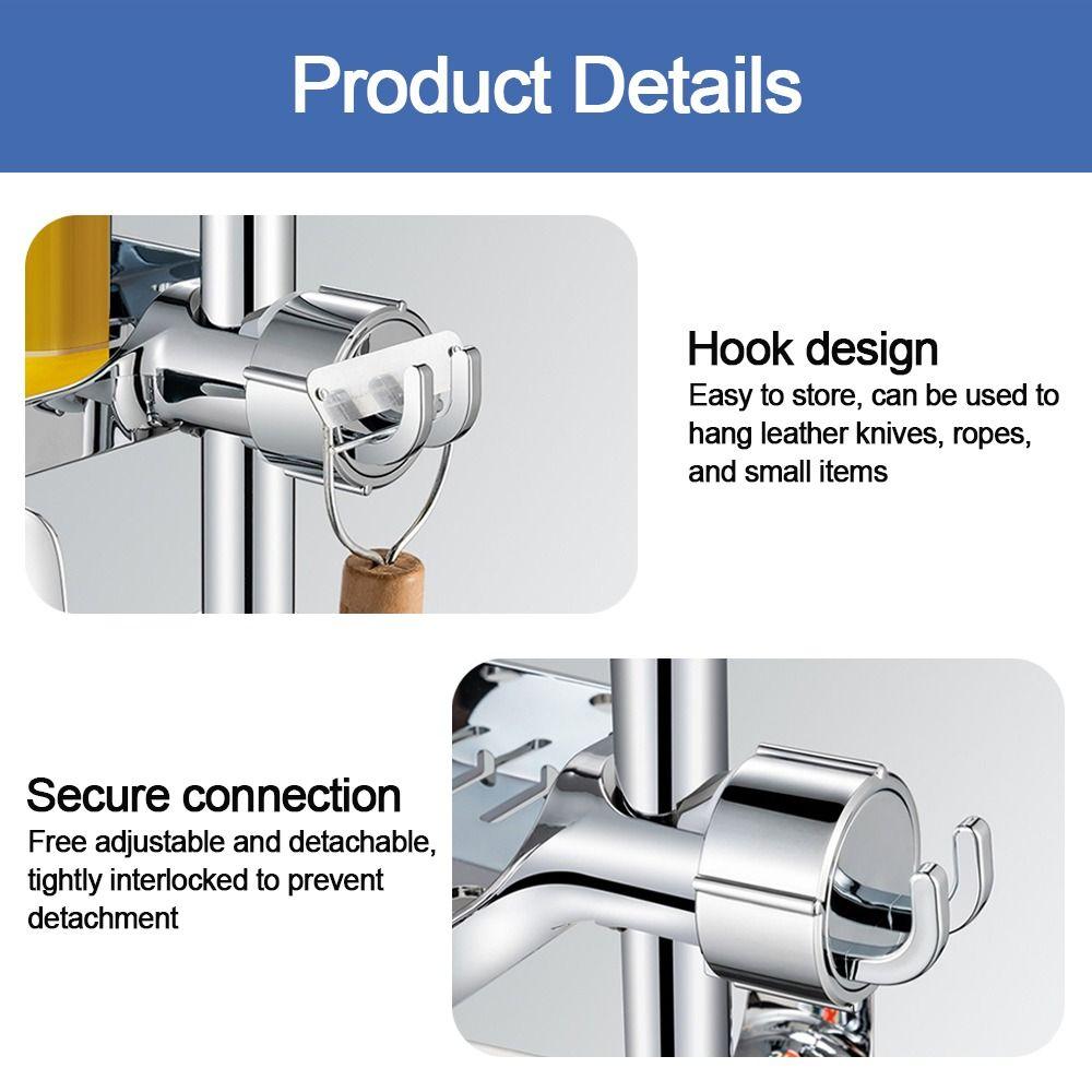 Adjustable Shower Rod Holder with Hook Shampoo Stand Shelf Bath Pipe Bracket Bathroom Accessories