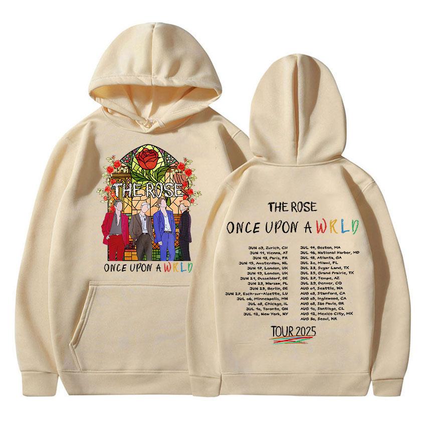 The Rose Once Upon AWRLD Мировой тур 2025 Новый худи Мужской Женский Хип-хоп K-pop Пуловер Свитшот Ретро С длинным рукавом Оверсайз Толстовка