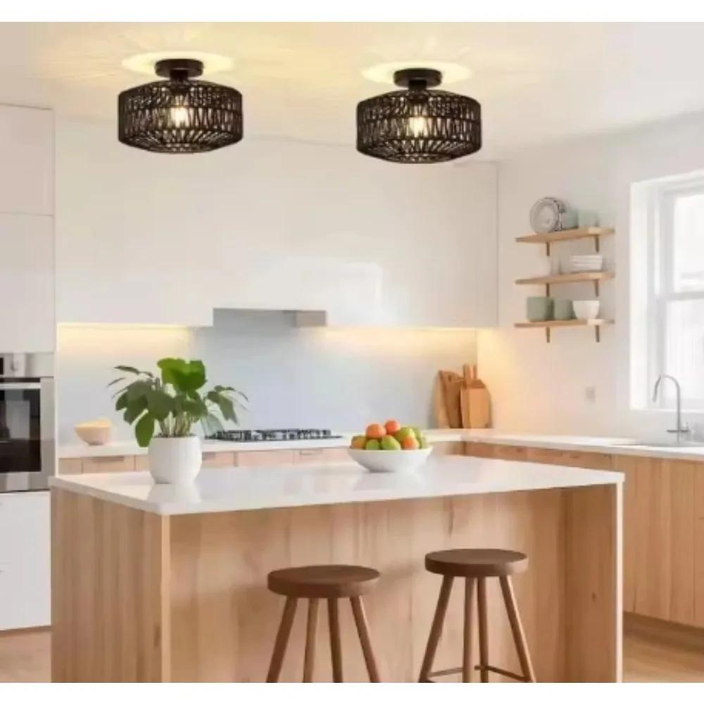 Ротанговый потолочный светильник E27 Светодиодные лампы Ручной работы Подвесной светильник для спальни для потолочного освещения Современный домашний декор Светильник 30 см