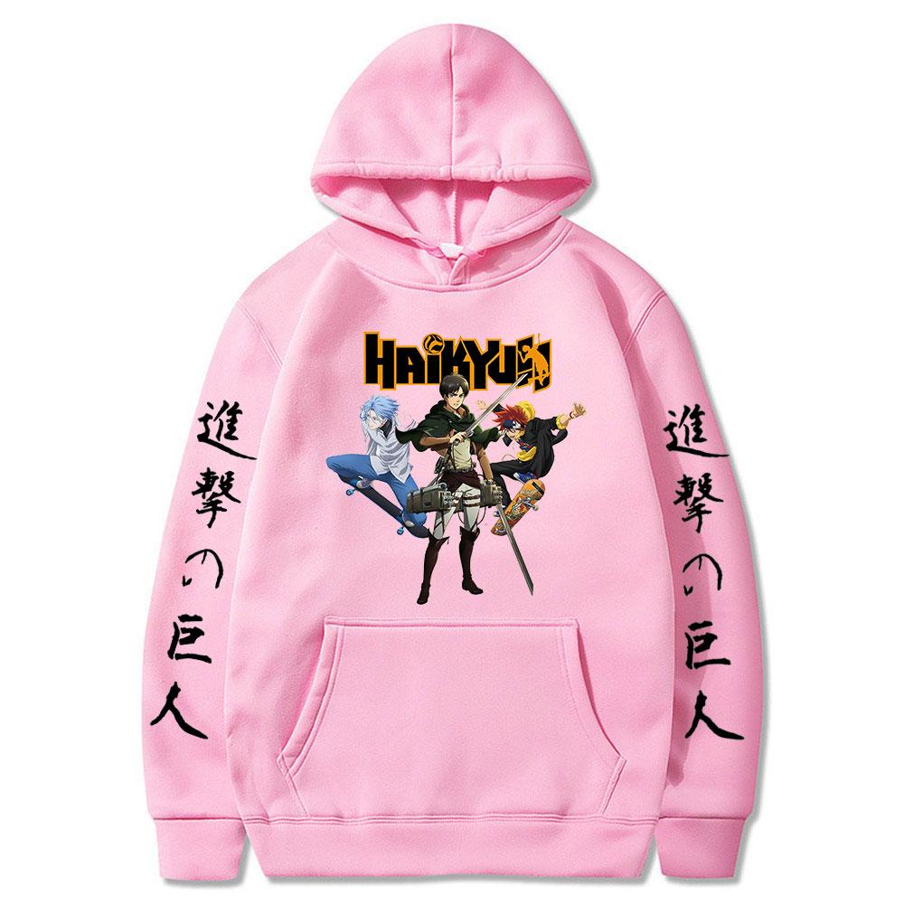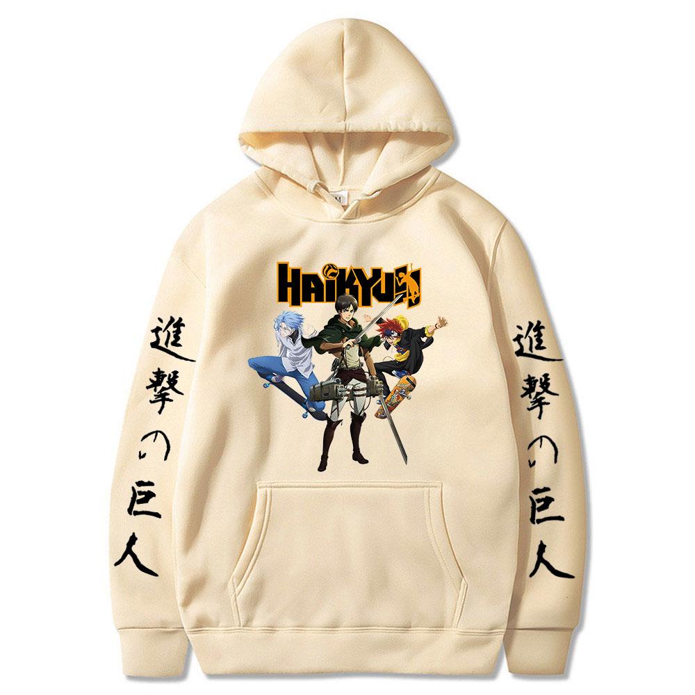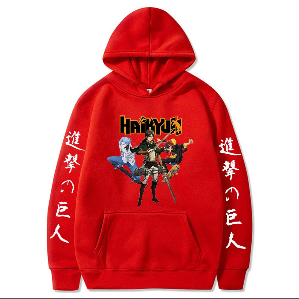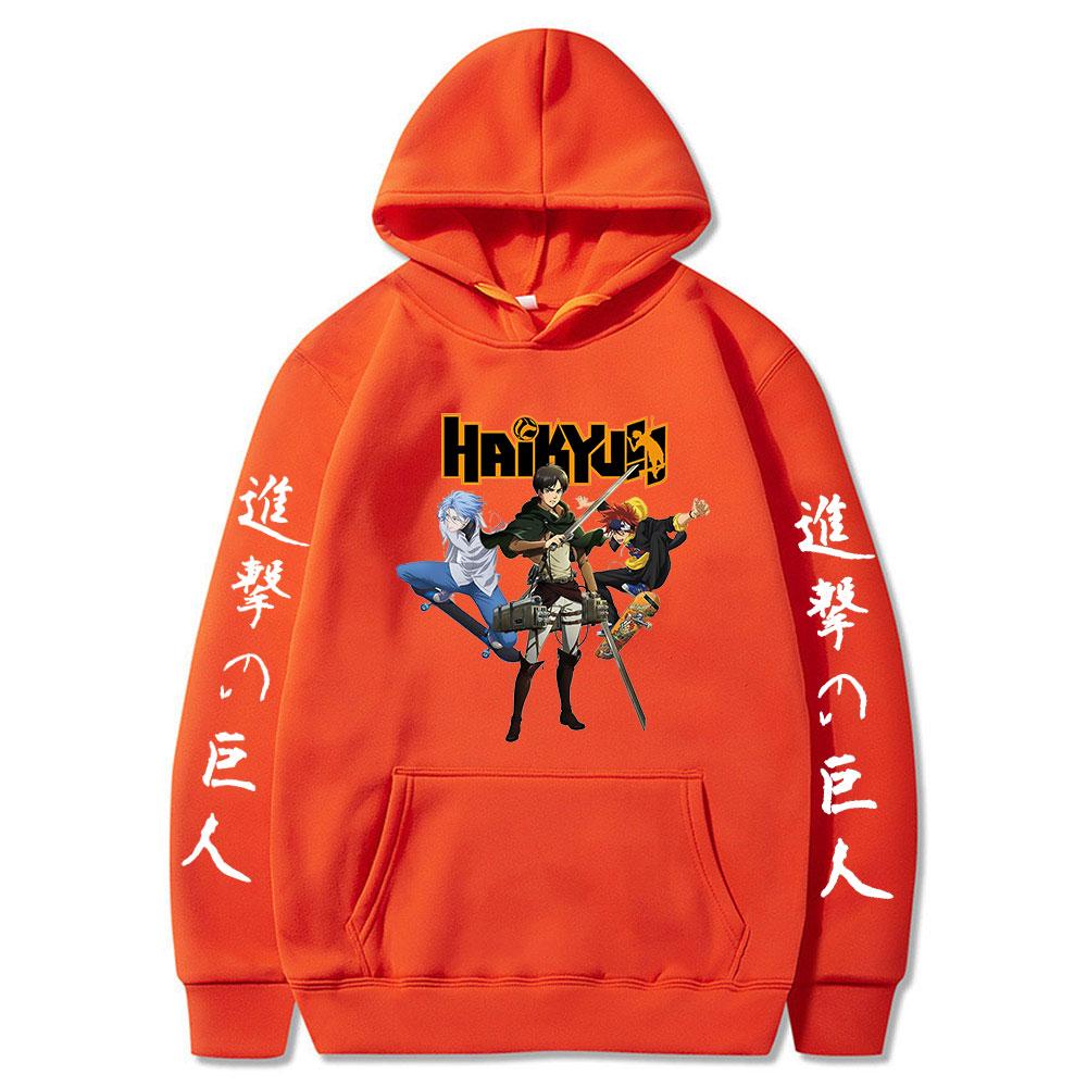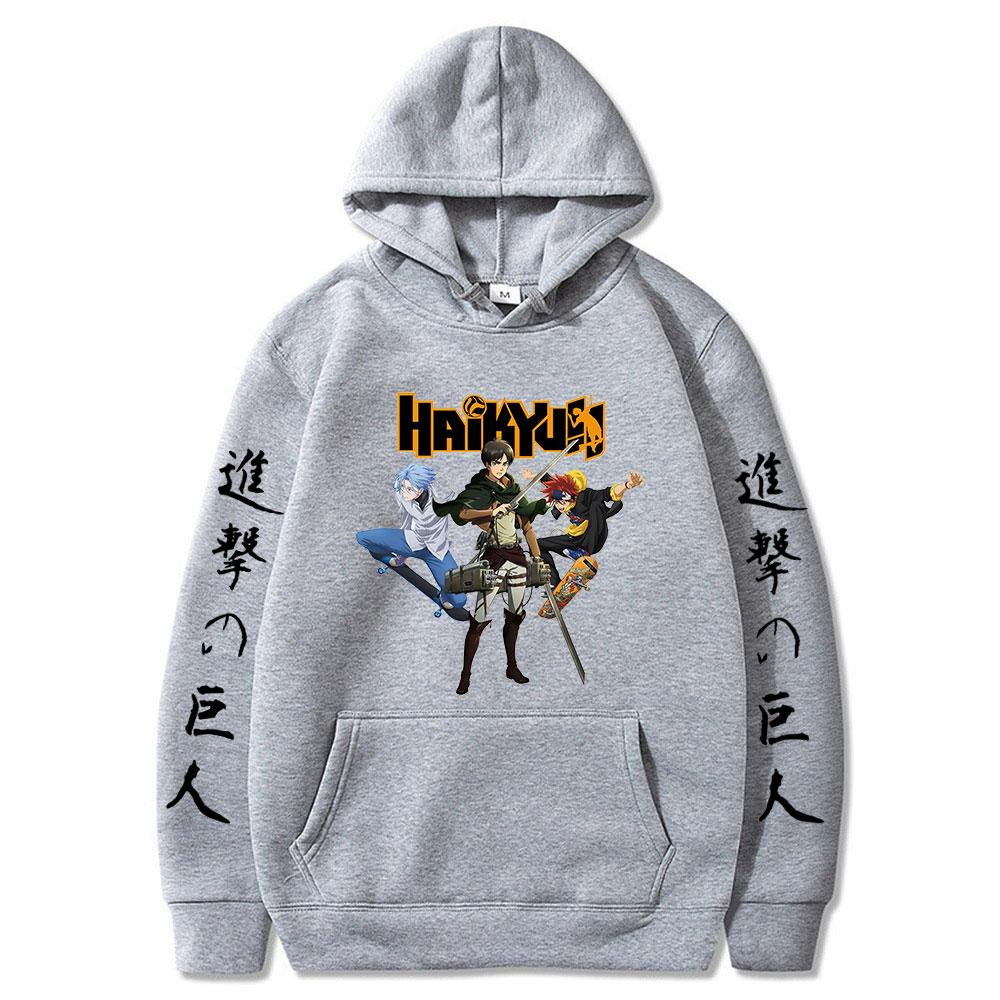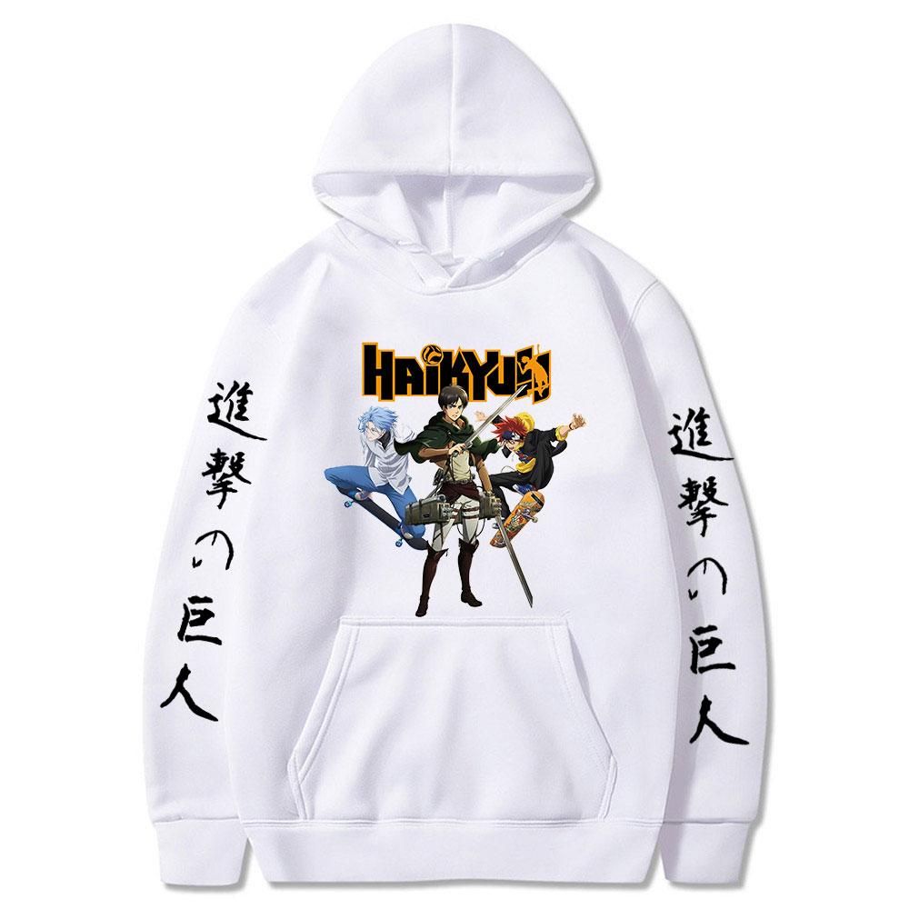Anime Haikyuu Attack On Titan Graphic Hoodies Vintage Oversized Hooded Sweatshirt Long Sleeves Cotton Hoodie Men Women Clothes